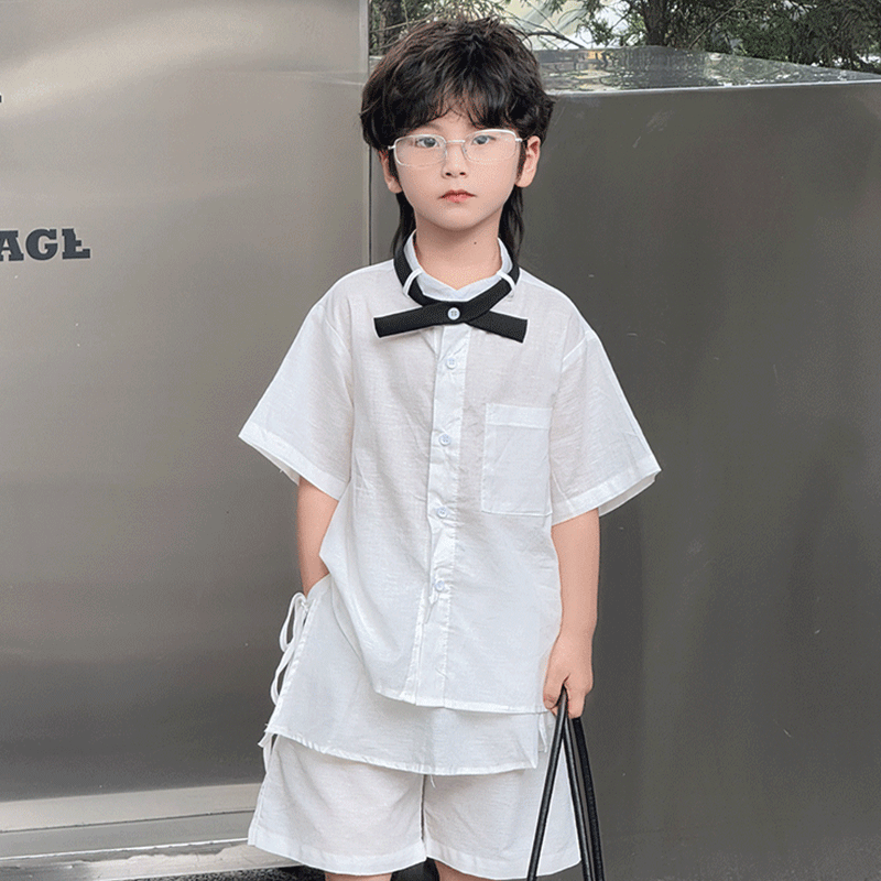 2025 여름 어린이 흰색 셔츠 남성 긴 반팔 여름 초등학교 교복 중대형 호스트 공연 의상 원피스스토어 가기