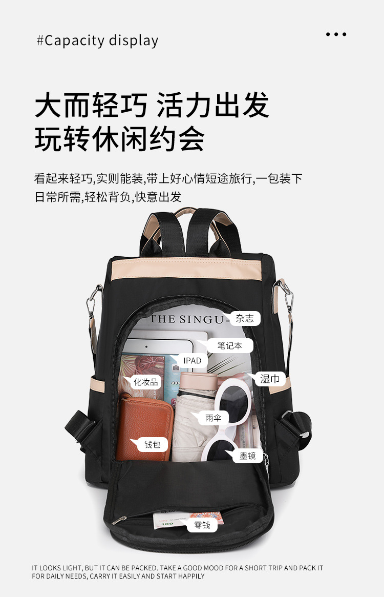 국경 간 스타일 나일론 배낭 2025 새로운 대용량 캐주얼 배낭 간단한 통근 대비 색상 도난 방지 여성 가방스토어 가기