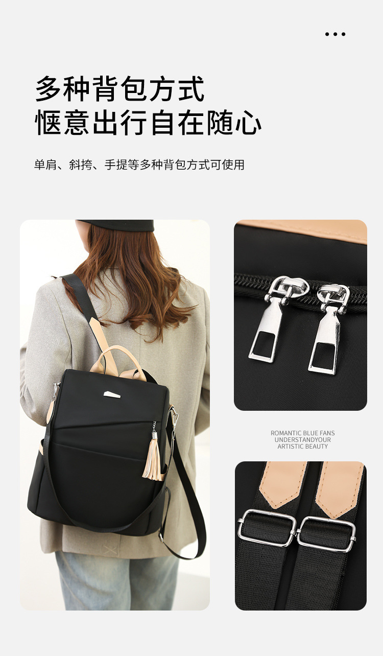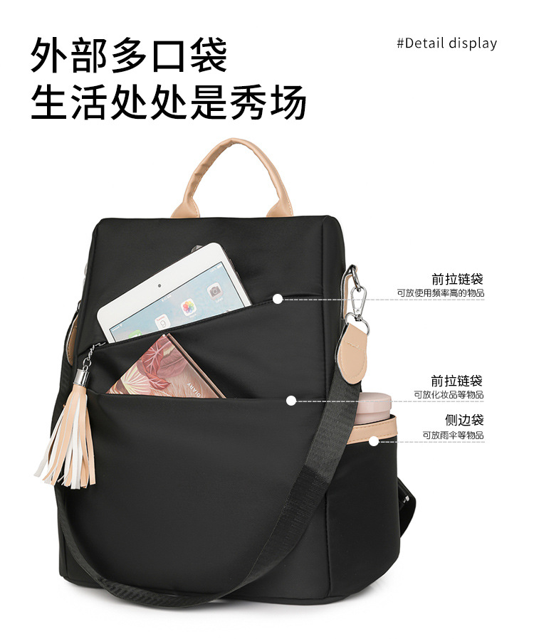 국경 간 스타일 나일론 배낭 2025 새로운 대용량 캐주얼 배낭 간단한 통근 대비 색상 도난 방지 여성 가방