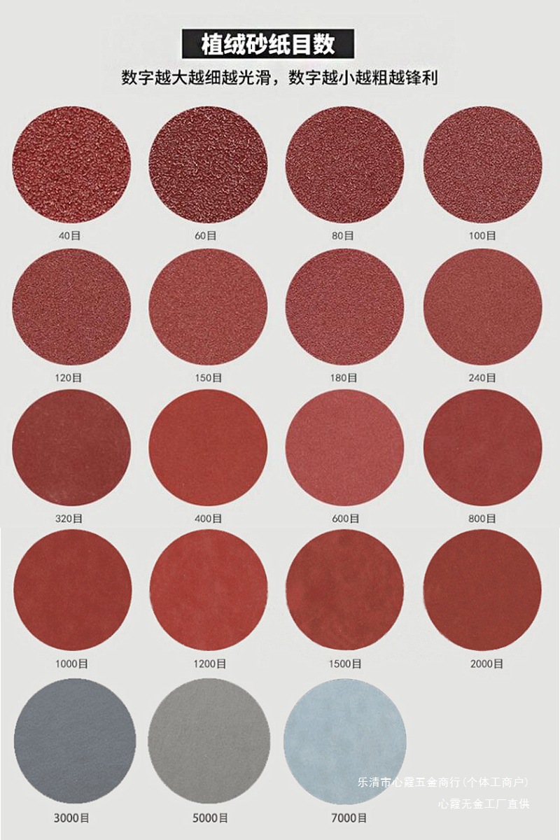砂纸目数:数字越大砂越细,数字越小砂越粗。