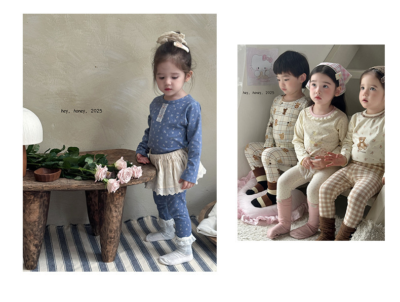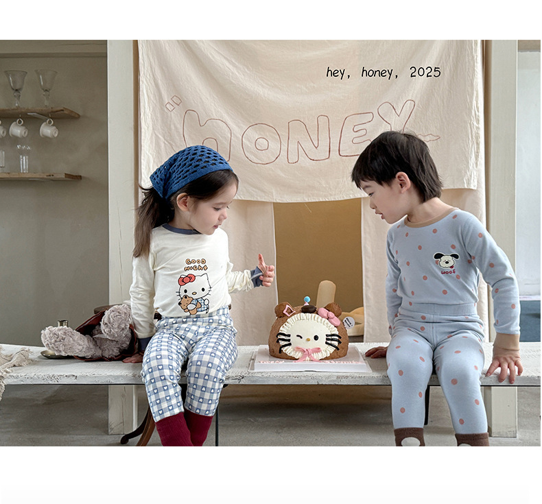 소형 및 대형 롤 헤이 허니 소년 소녀 200 클레카 가을 옷과 긴 바지 속옷 세트 순면 잠옷 2 피스 세트스토어 가기