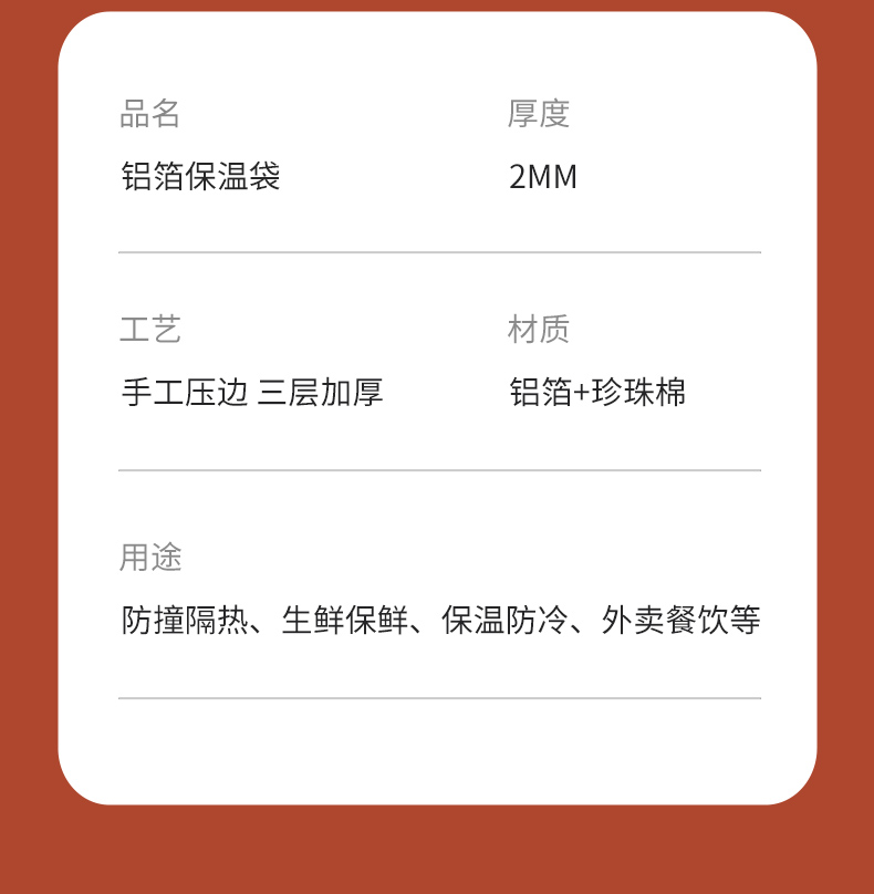 접착제가 포함된 일회용 단열 가방 알루미늄 냉장 테이크아웃 피자 밀크티 포장 냉장 보관을 위한 두꺼운 상업용 단열 가방