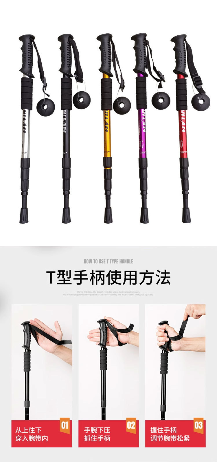 전문 야외 등산 스틱, 텔레스코픽 접이식 다기능 자기 방어 스틱, 남성용 및 여성용 어린이 등산 지팡이, 경량 지팡이