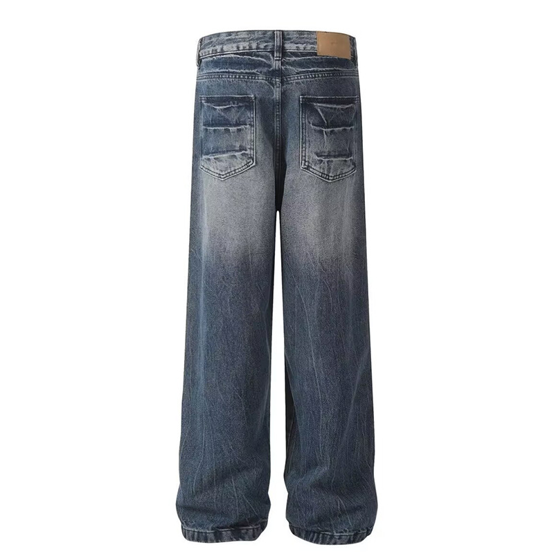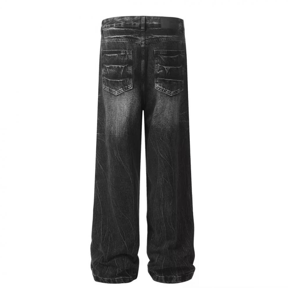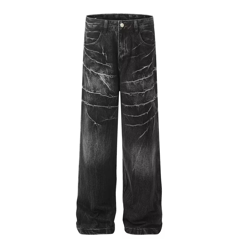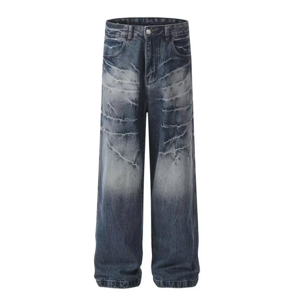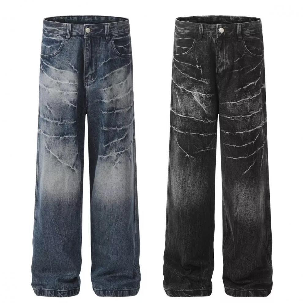 2025 여름 아메리칸 스타일 올드 워싱 번개 패턴 다목적 크리에이티브 와이드 레그 레트로 핸섬 패션 청바지 남성용