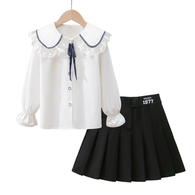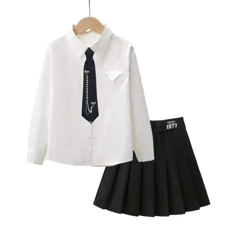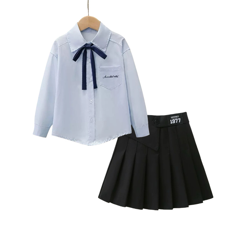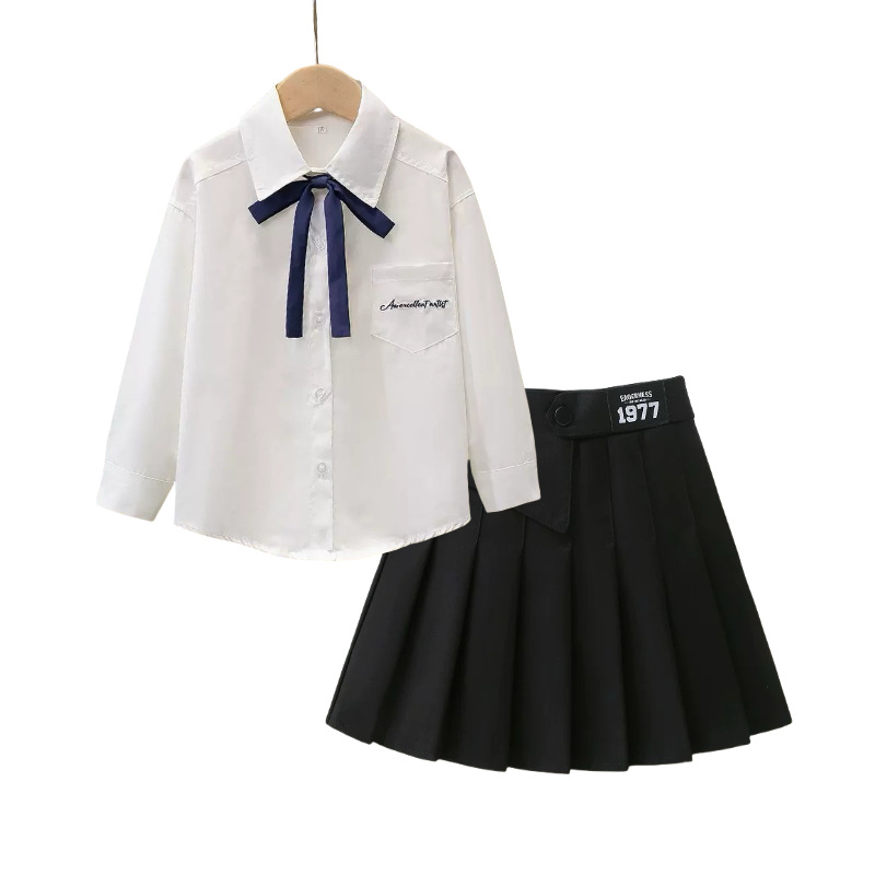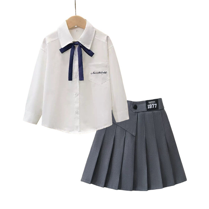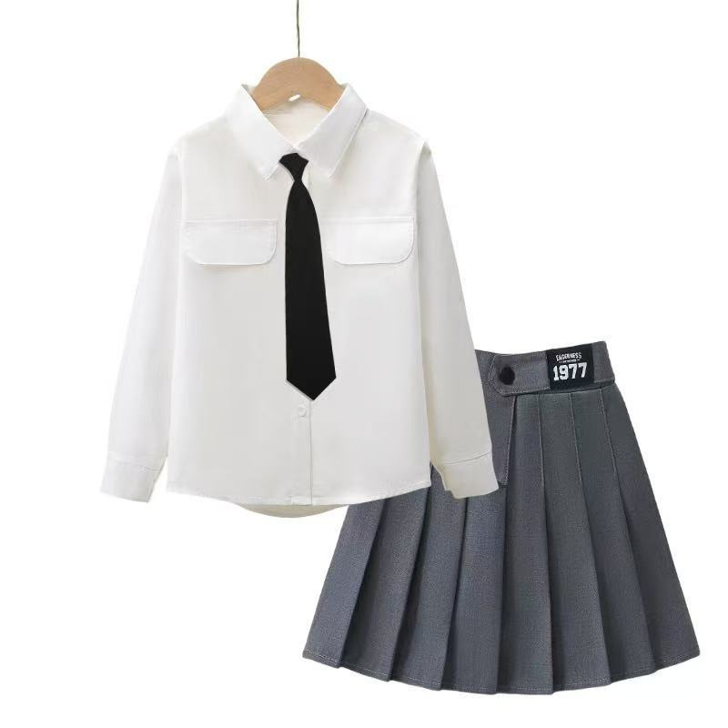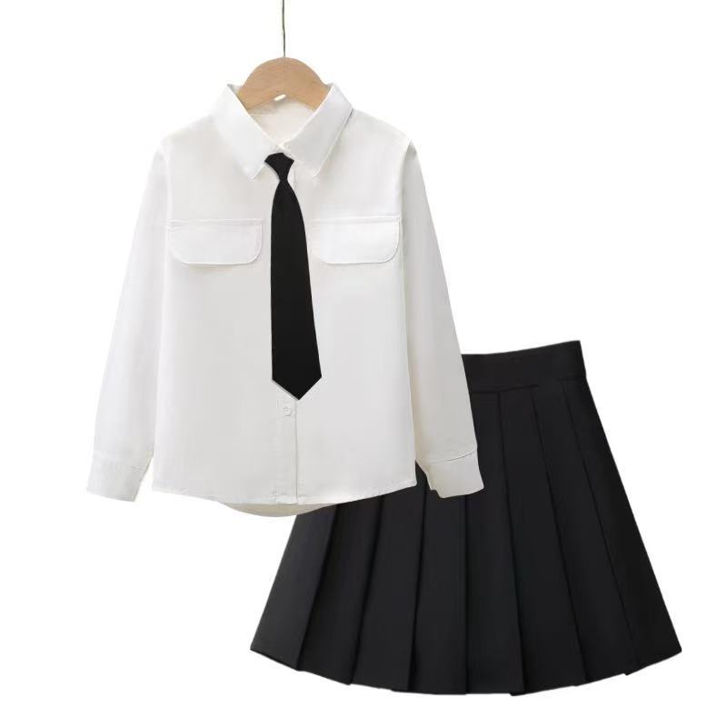 여자 JK 정장 2025 교복 탑 대학 스타일 셔츠 중대형 어린이 주름 스커트 3 피스 세트