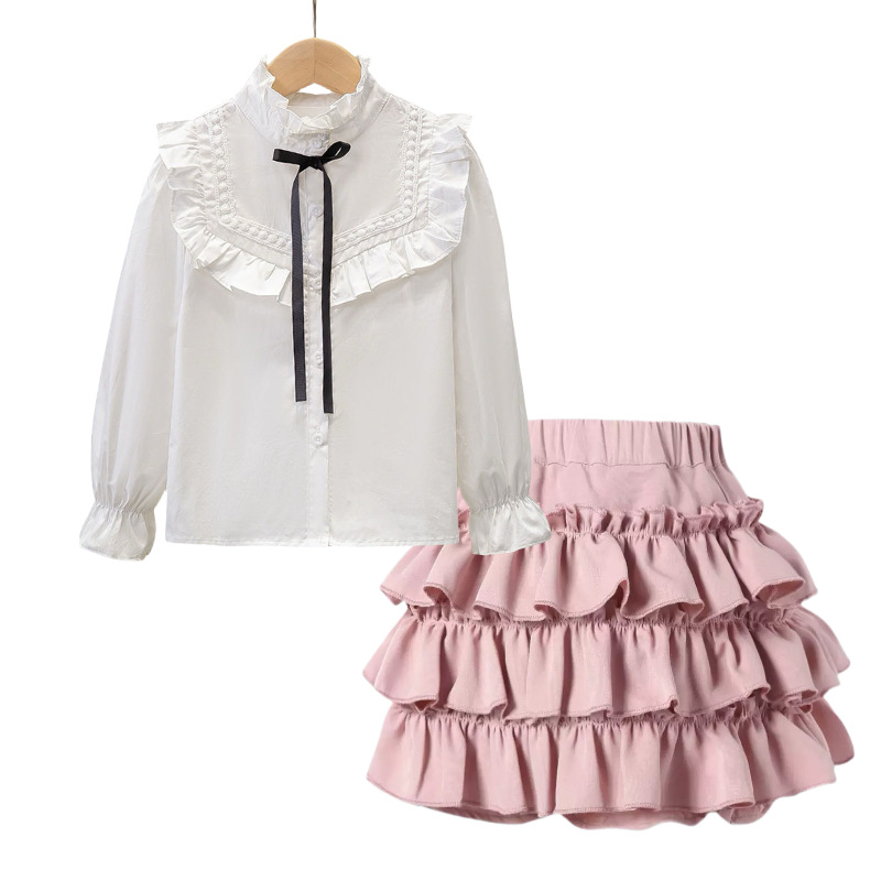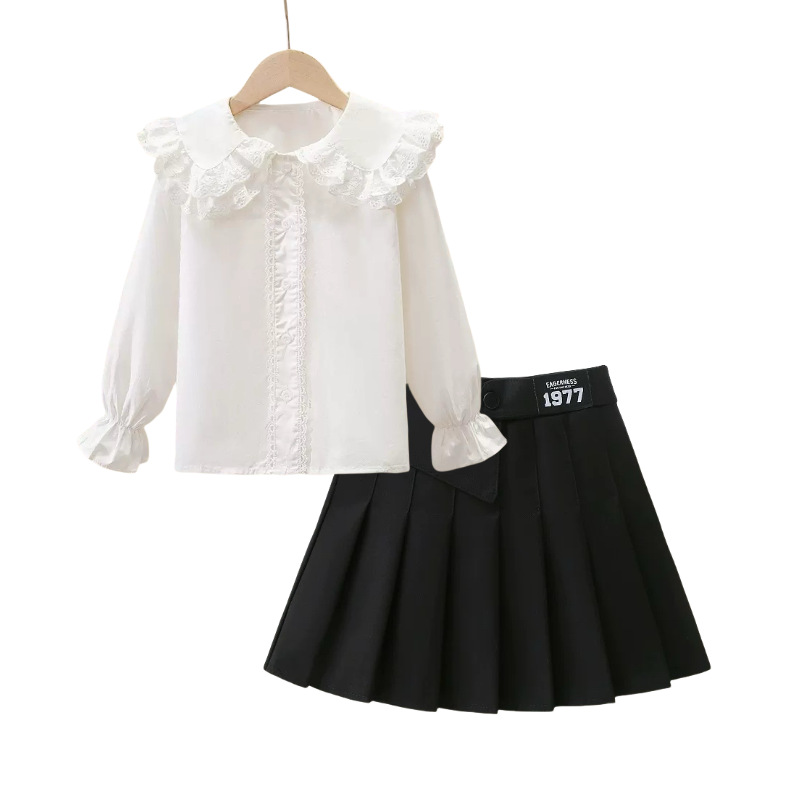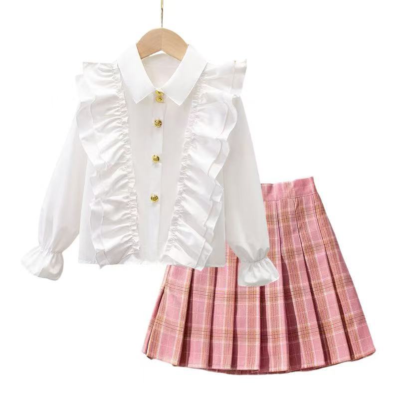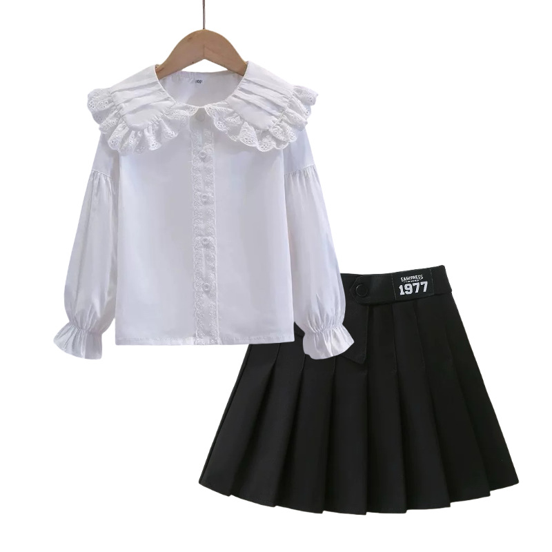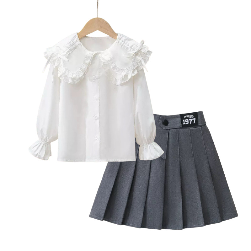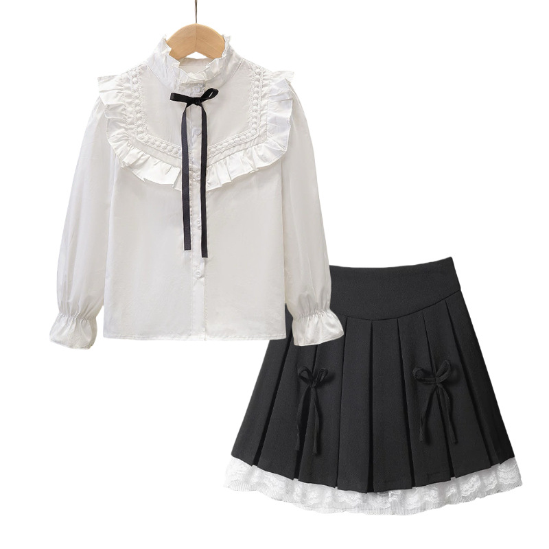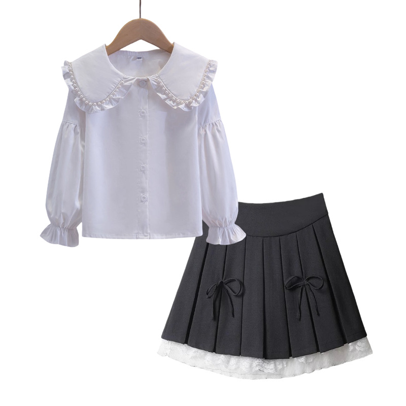 여자 JK 정장 2025 교복 탑 대학 스타일 셔츠 중대형 어린이 주름 스커트 3 피스 세트