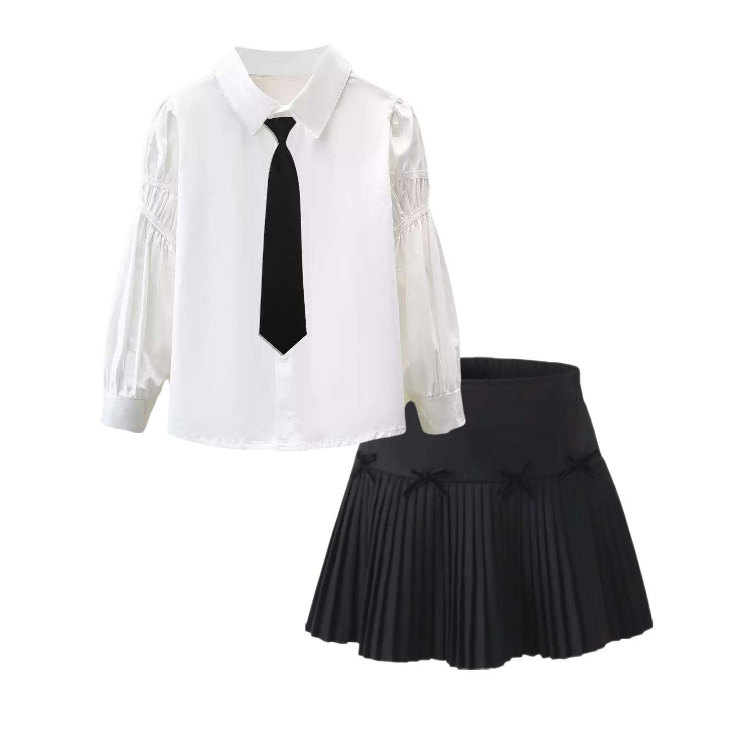 • 009 셔츠 + 나비 리본 스커트 4개 - 블랙 + 블랙 넥타이