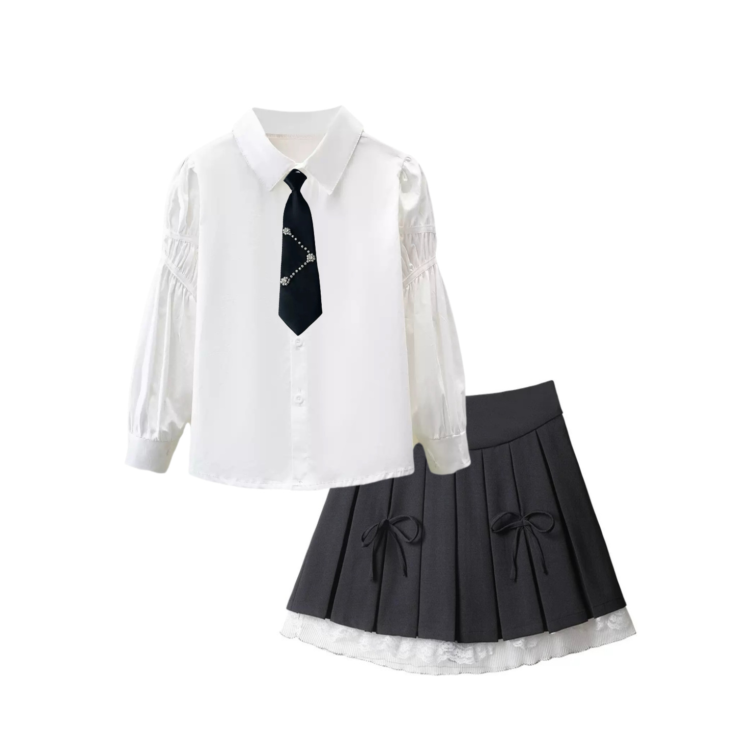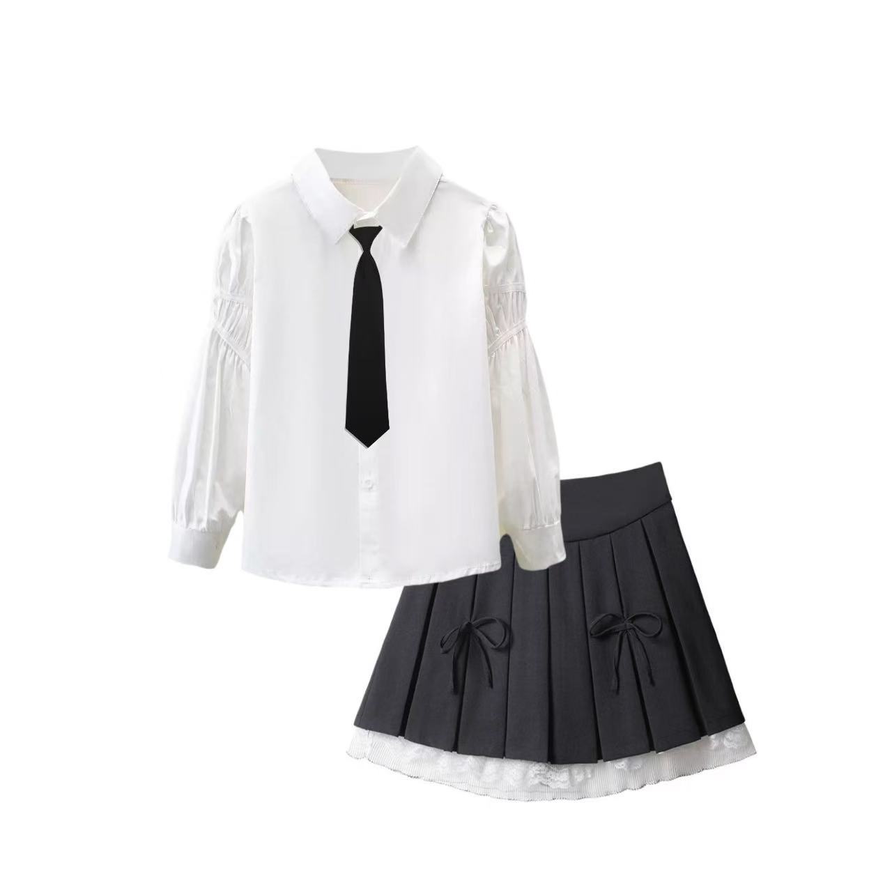 • 009 셔츠 + 나비 리본 스커트 4개 - 회색 + 검정 넥타이