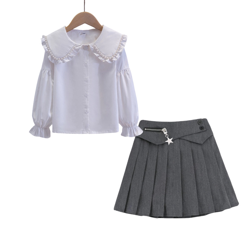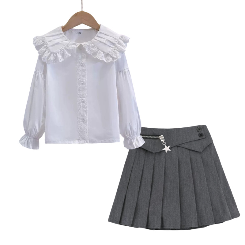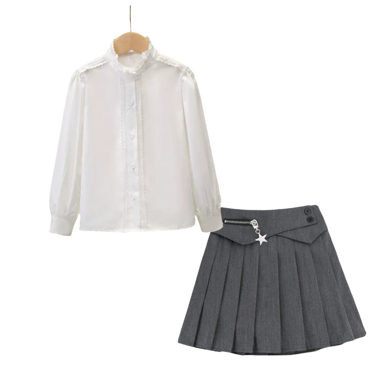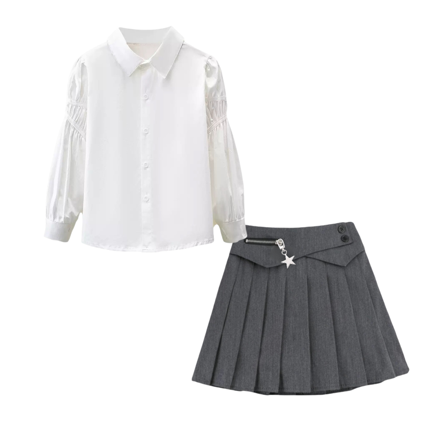 • A27 셔츠 + 별 플리츠 스커트 - 그레이