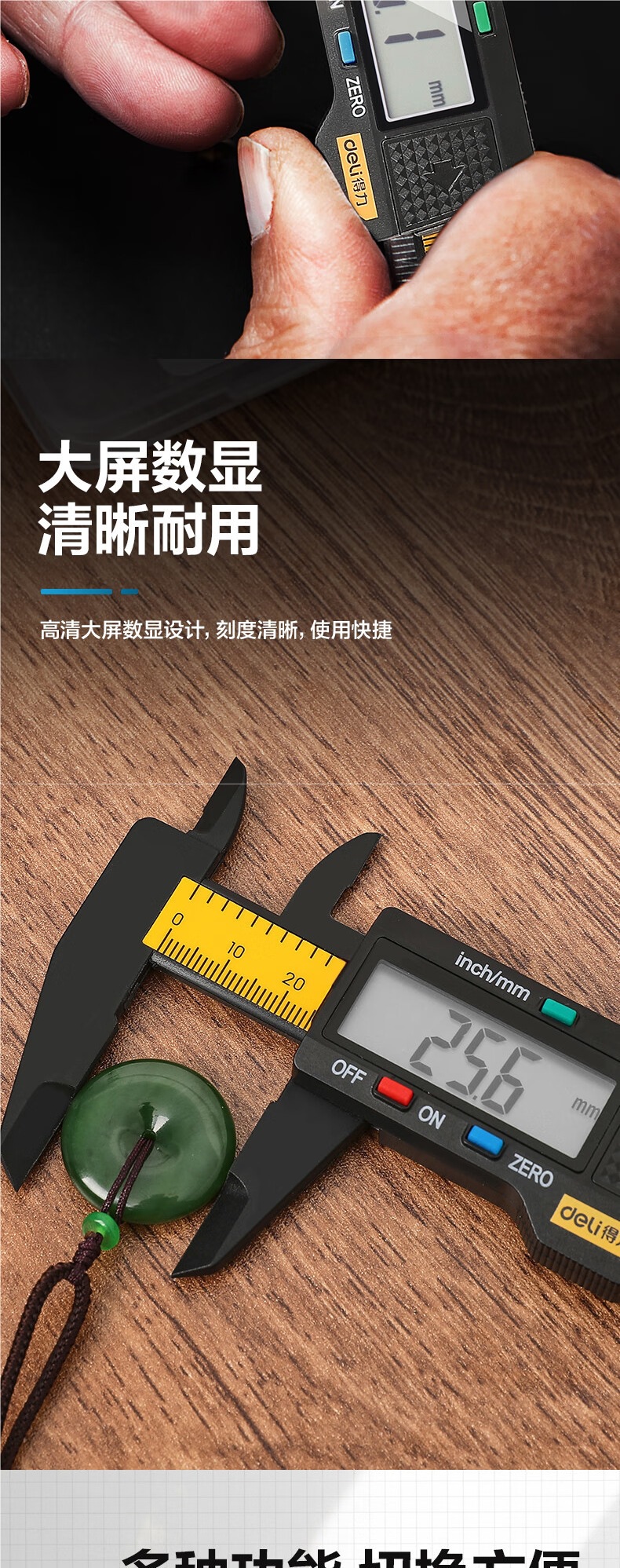 Deli DL90150B 디지털 버니어 캘리퍼스 고정밀 대형 스크린 문화 옥 팔찌 쥬얼리 내부 및 외부 직경