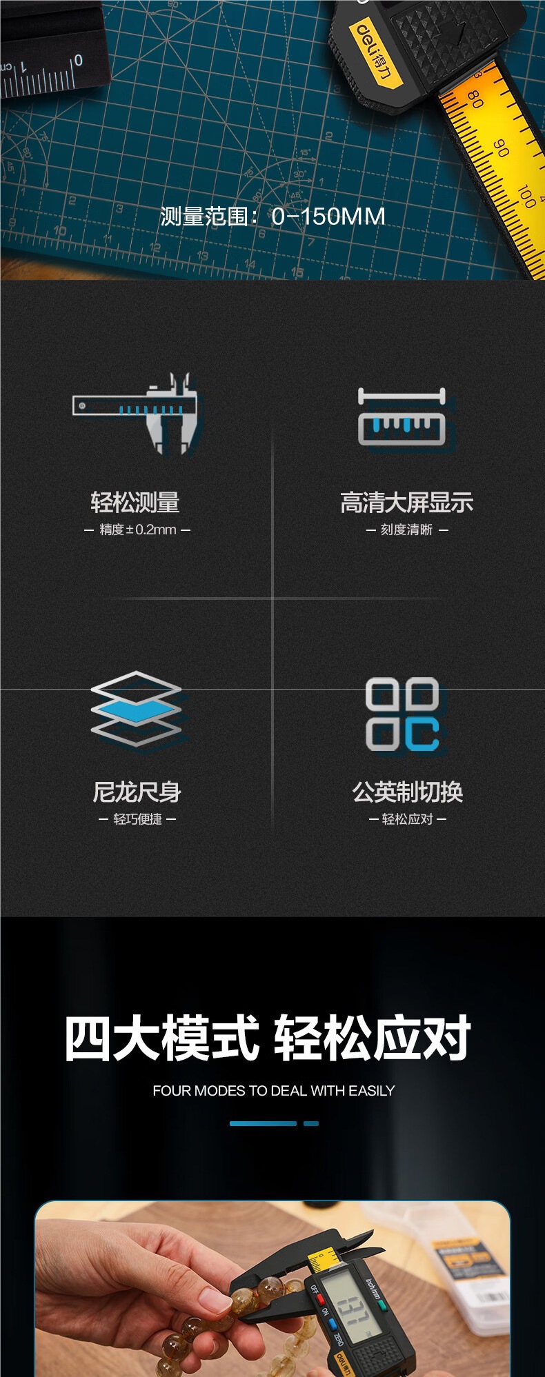 Deli DL90150B 디지털 버니어 캘리퍼스 고정밀 대형 스크린 문화 옥 팔찌 쥬얼리 내부 및 외부 직경스토어 가기