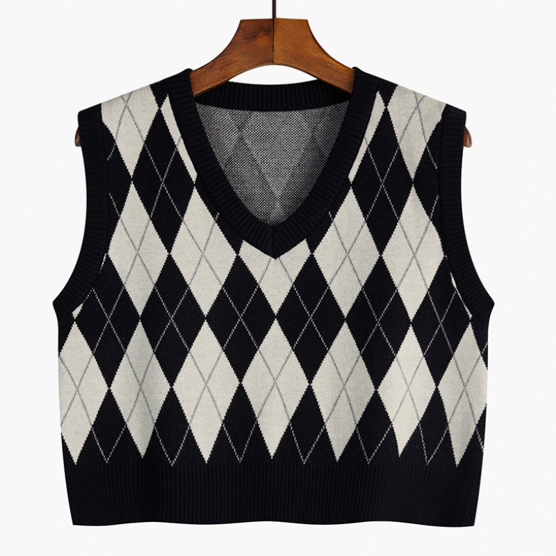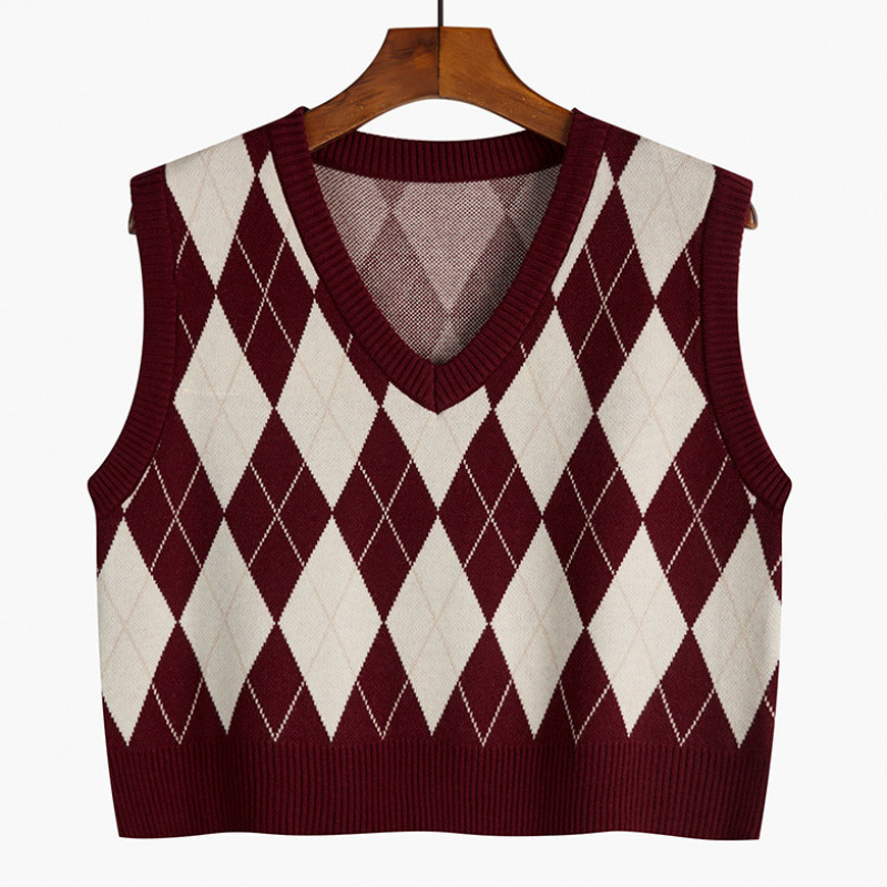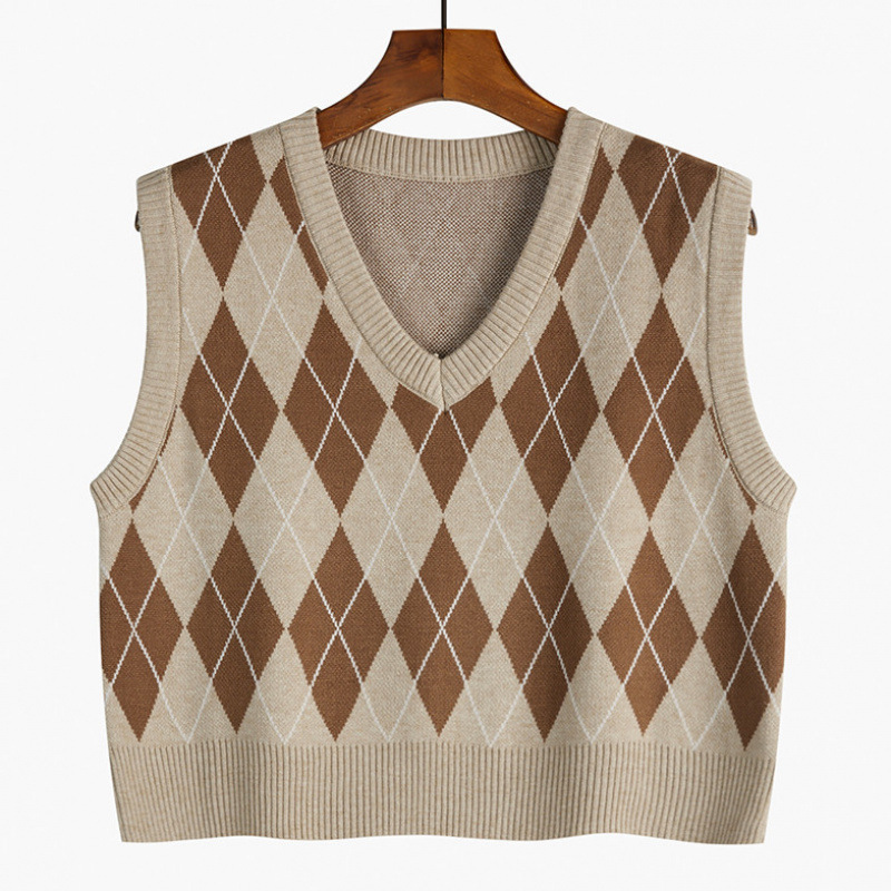 여성용 레트로 마름모 조끼, 2025 봄 가을 신상 칼라 니트 조끼, 짧은 루즈 조끼, 트렌디한 아우터웨어