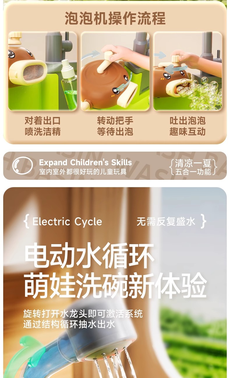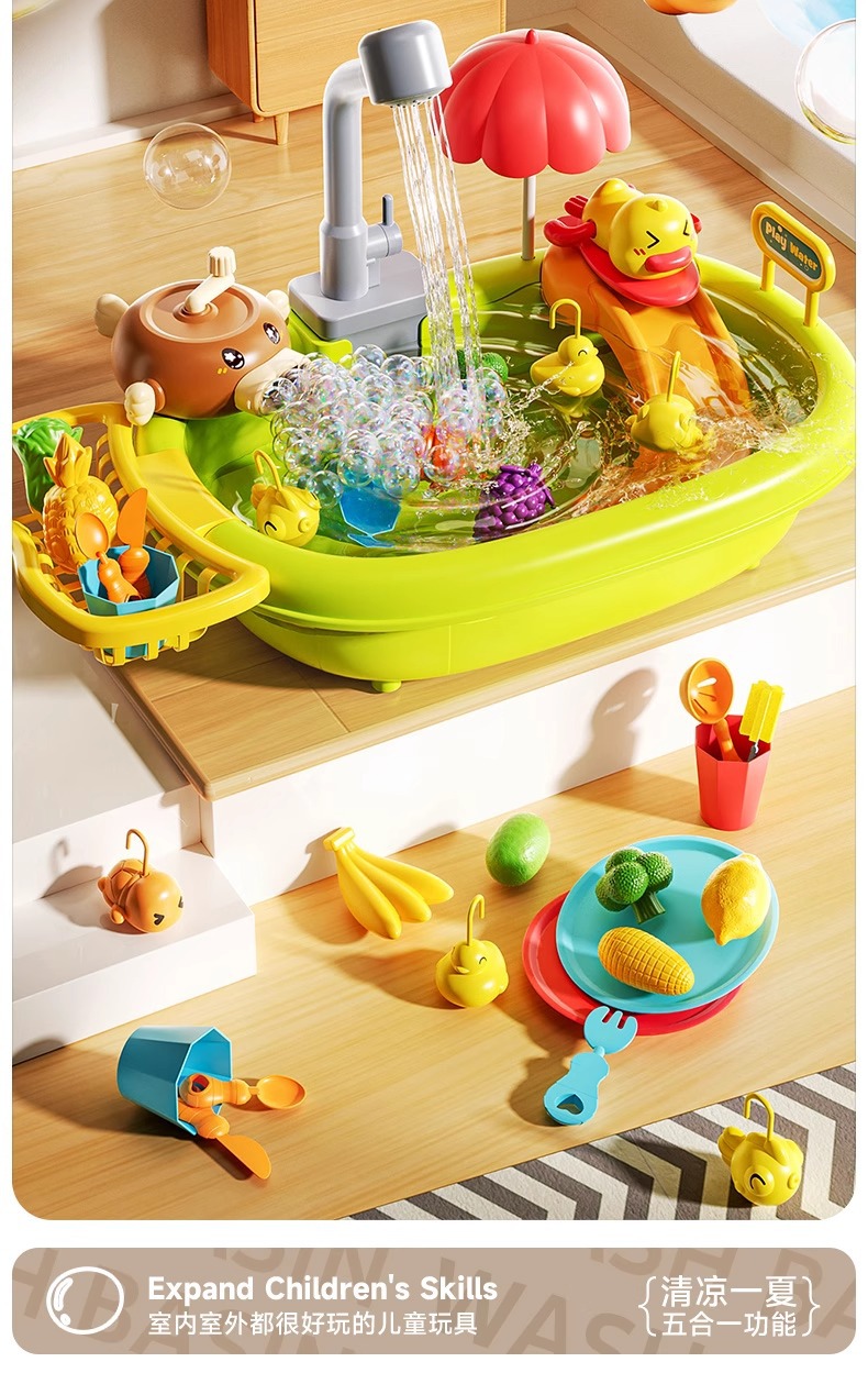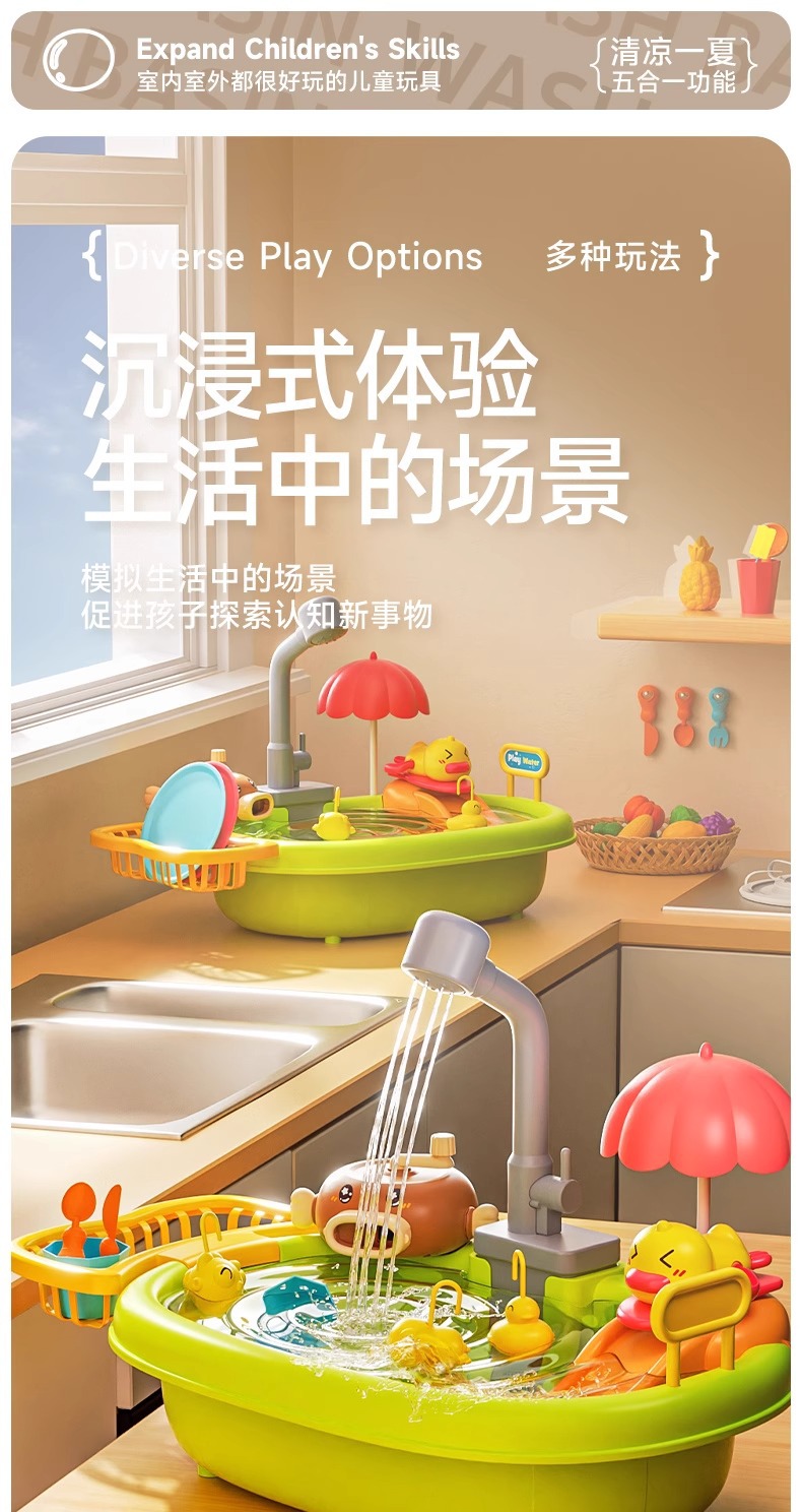 2025년 새로운 어린이 식기 세척기 장난감 수도꼭지 순환 물 소녀를위한 요리 및 놀이 주방스토어 가기
