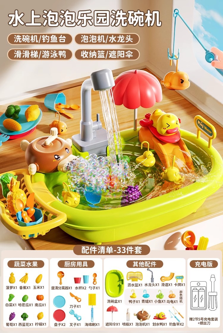 • [8-in-1·작은 노란 오리 설거지대] 33종 세트 - 일반 배터리 버전