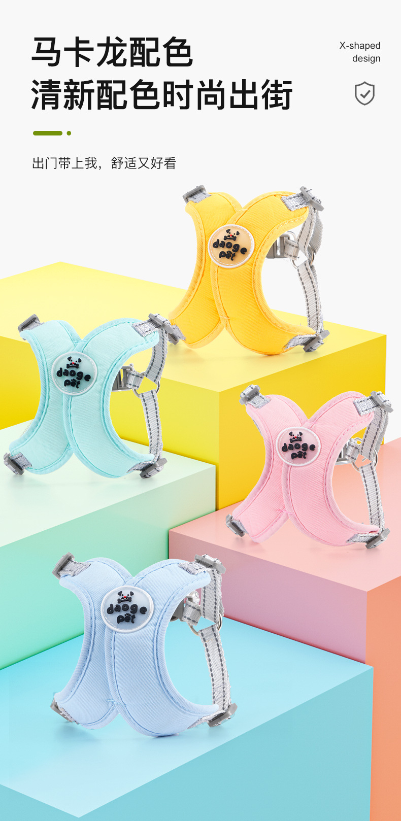 새로운 애완 동물 가죽 끈 조끼 스타일 개 가슴 스트랩 반사 개 가죽 끈 애완 동물 용품 재고 있음 도매스토어 가기
