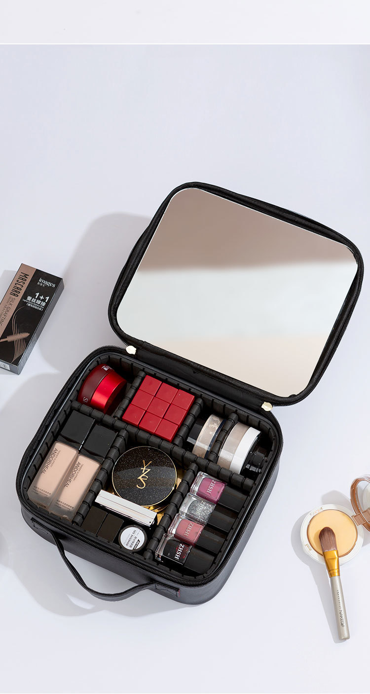 • 거울 + 브러쉬 버전 + 칸막이 + 고정 스트랩 [블랙]