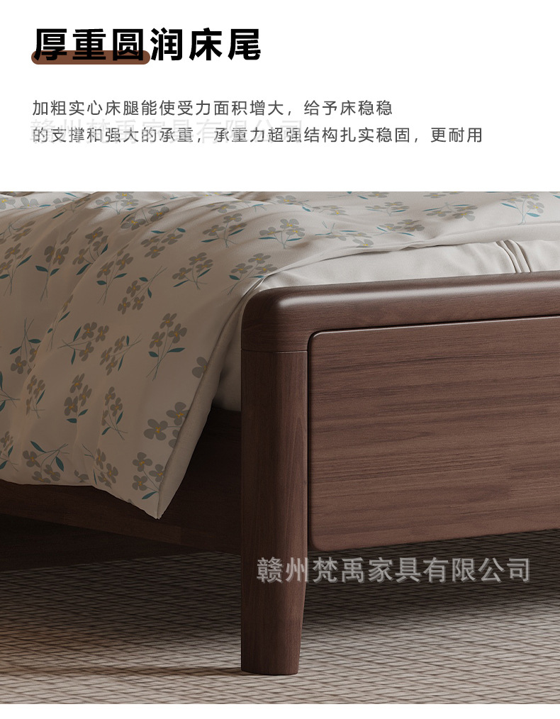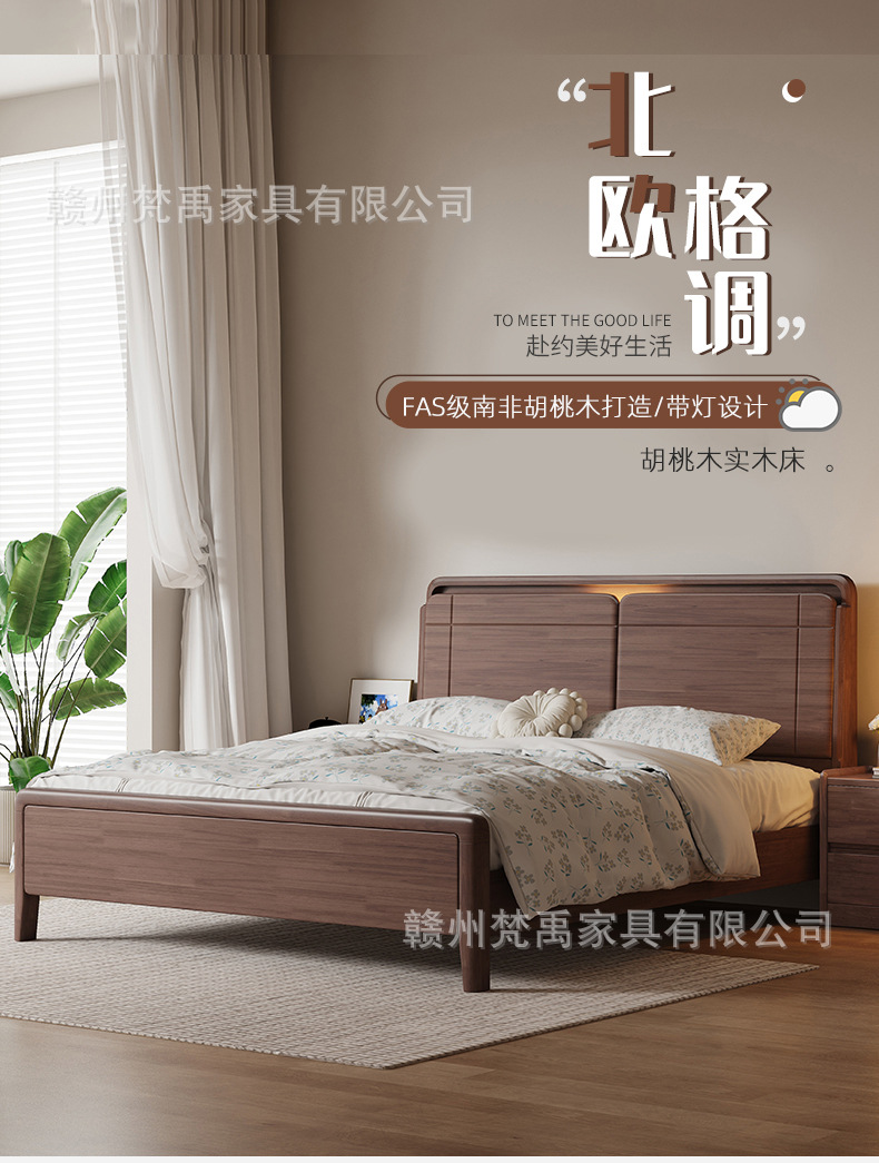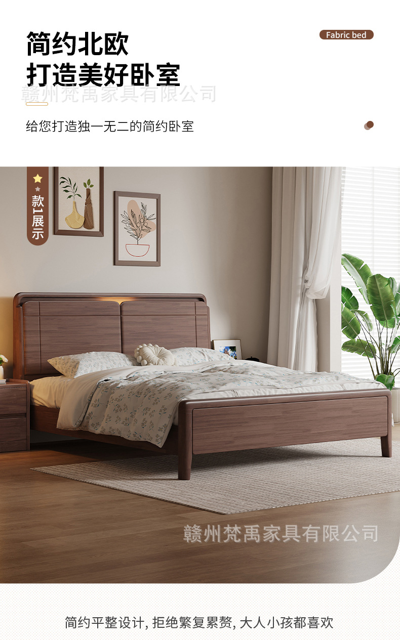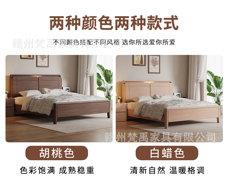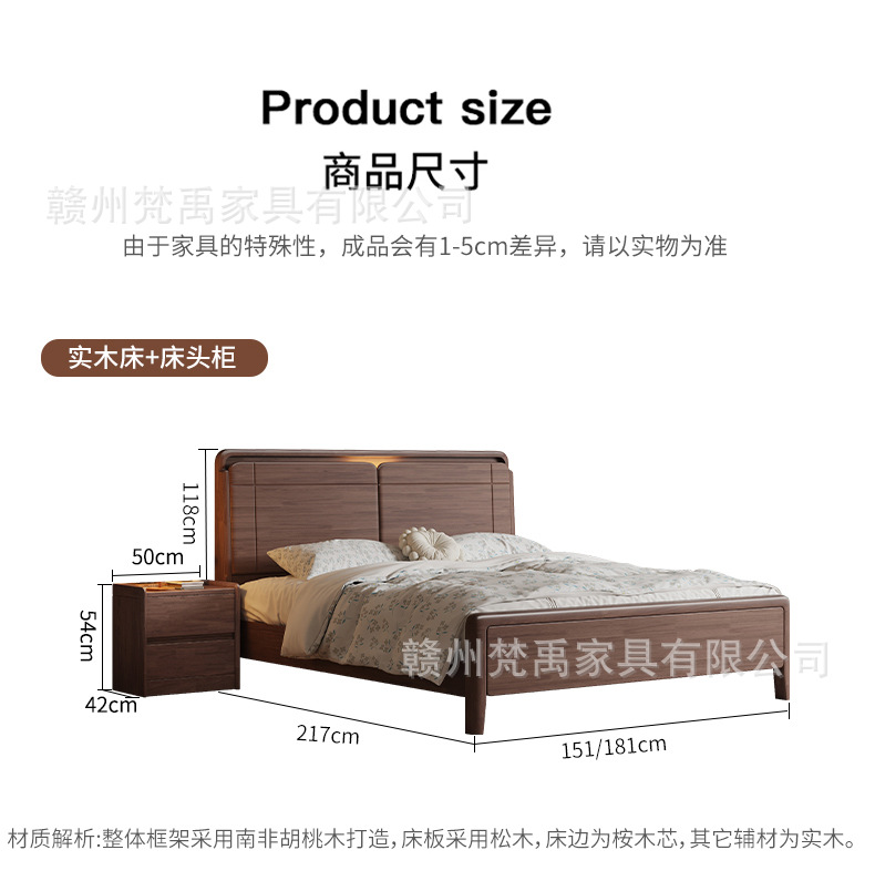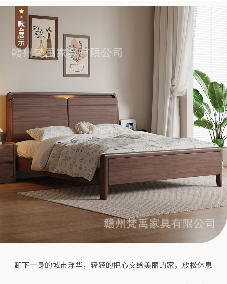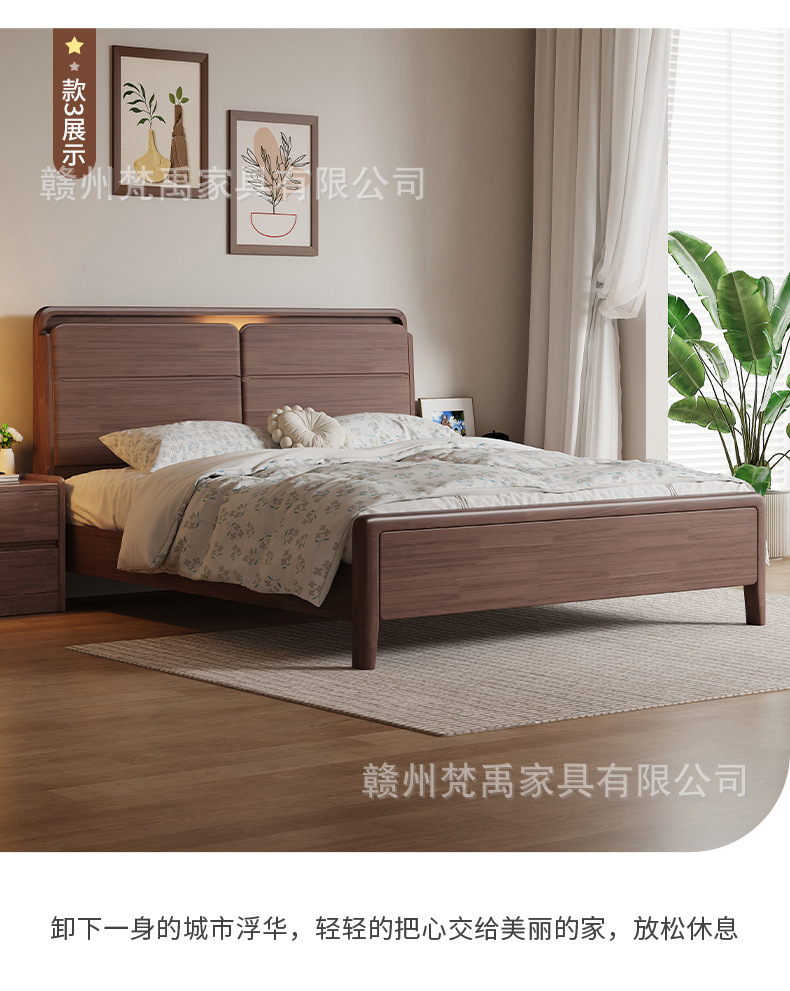 호두나무 원목 침대 1.8m 더블 침대 마스터 침실 현대적인 미니멀리스트 작은 아파트 가구 1.5m 싱글 침대스토어 가기