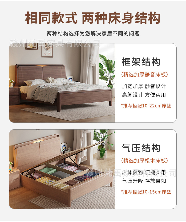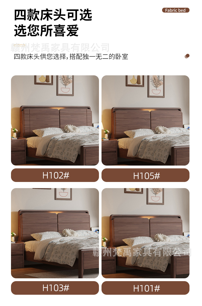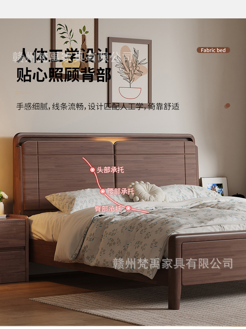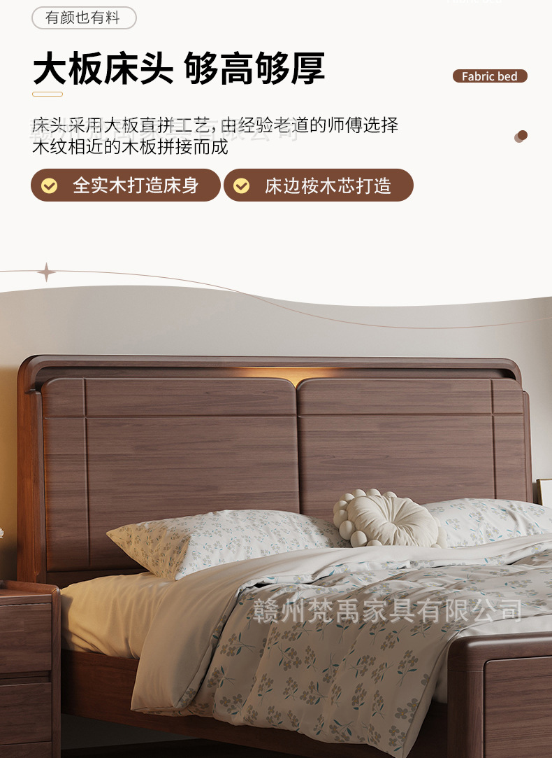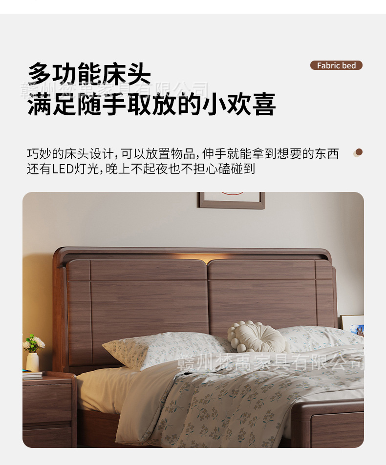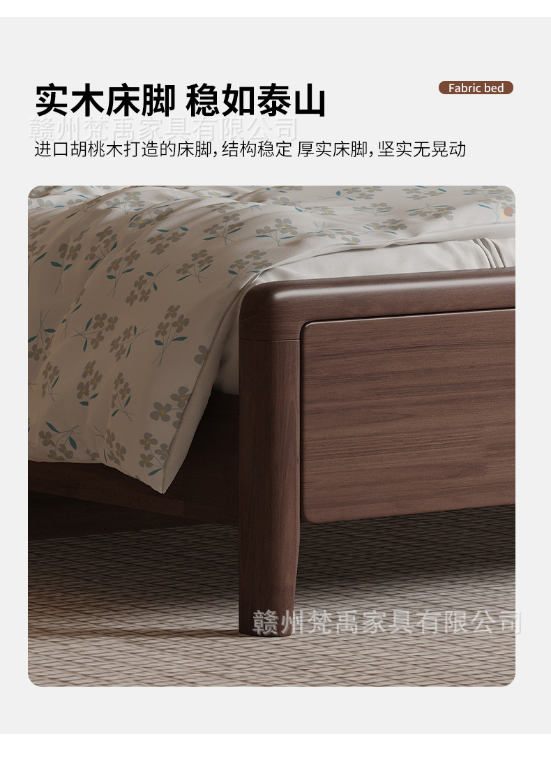 호두나무 원목 침대 1.8m 더블 침대 마스터 침실 현대적인 미니멀리스트 작은 아파트 가구 1.5m 싱글 침대스토어 가기