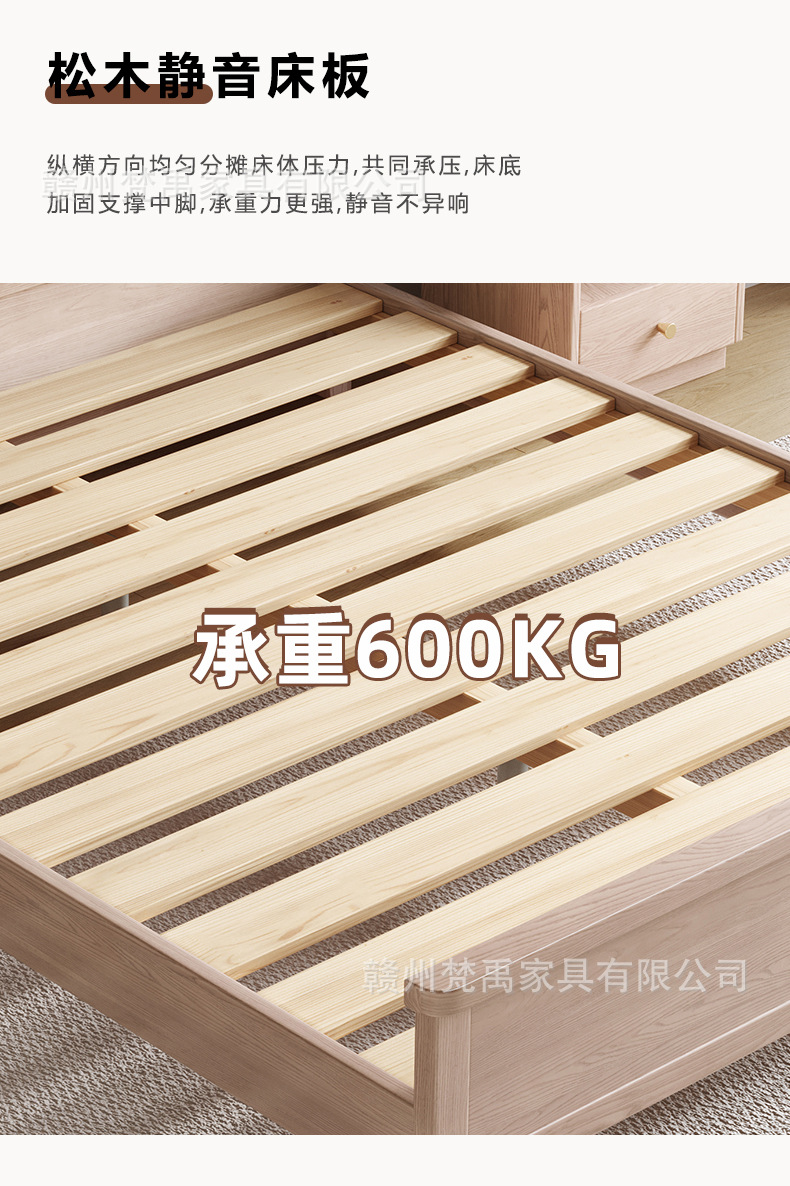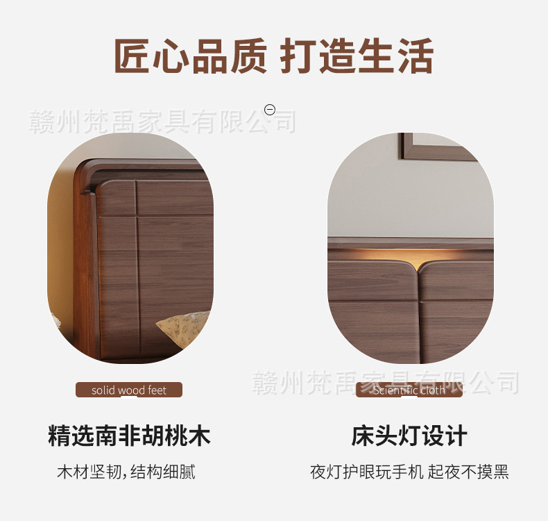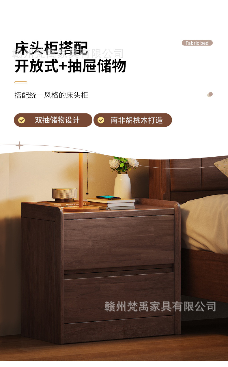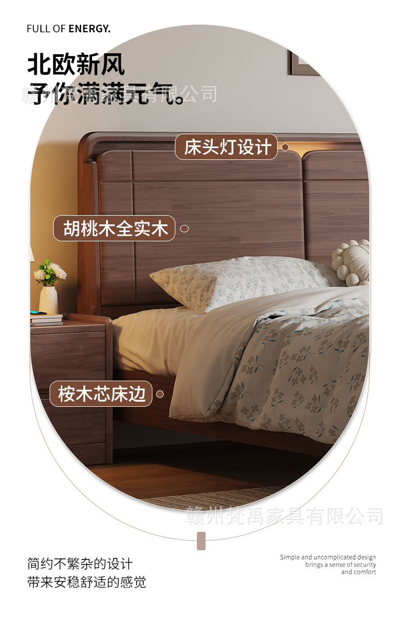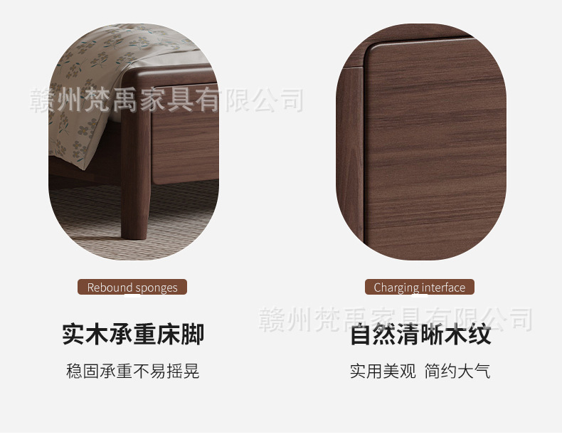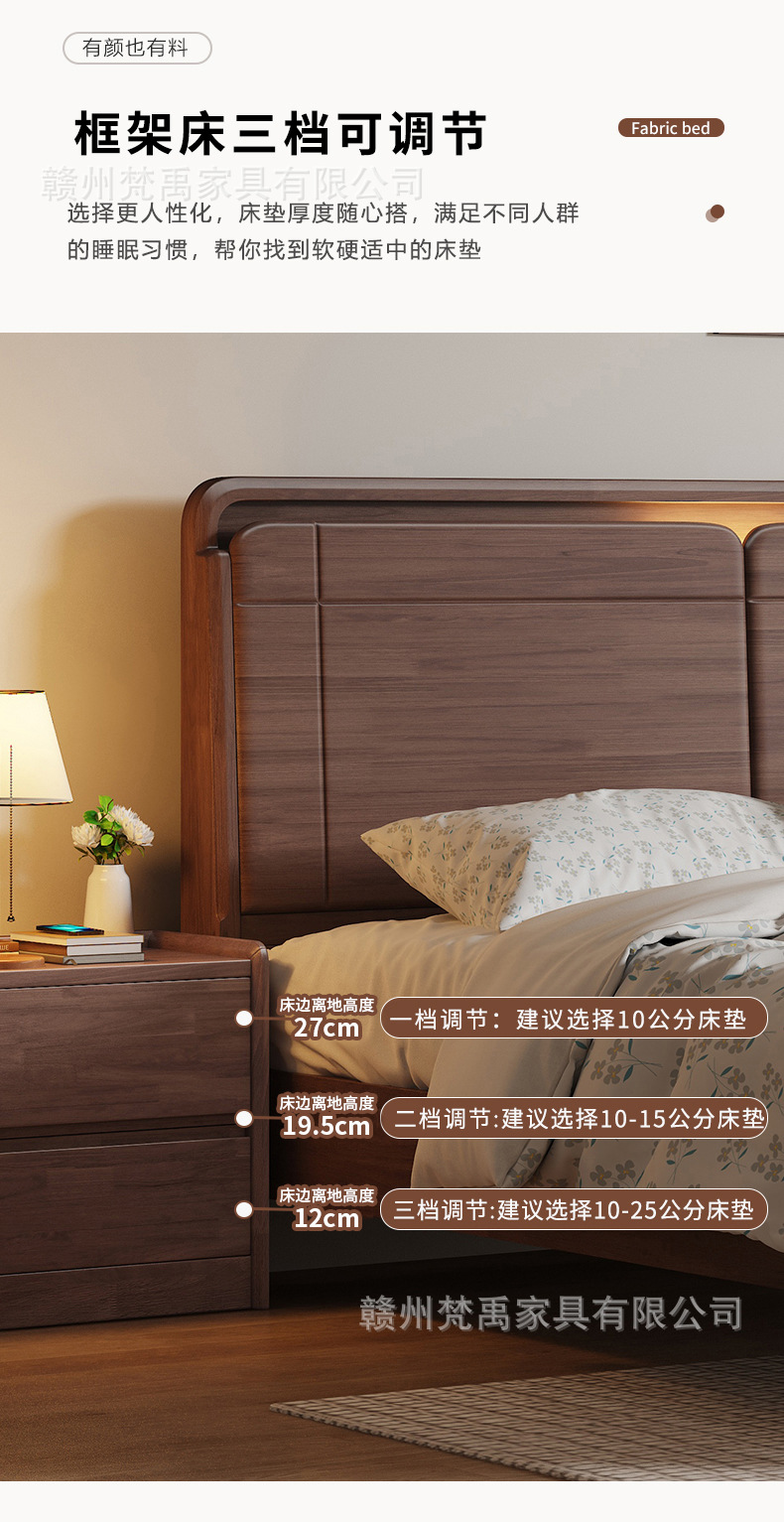 호두나무 원목 침대 1.8m 더블 침대 마스터 침실 현대적인 미니멀리스트 작은 아파트 가구 1.5m 싱글 침대스토어 가기