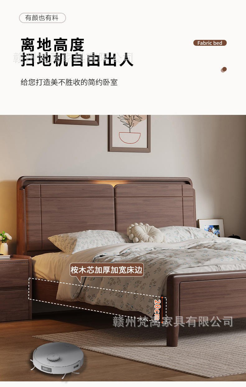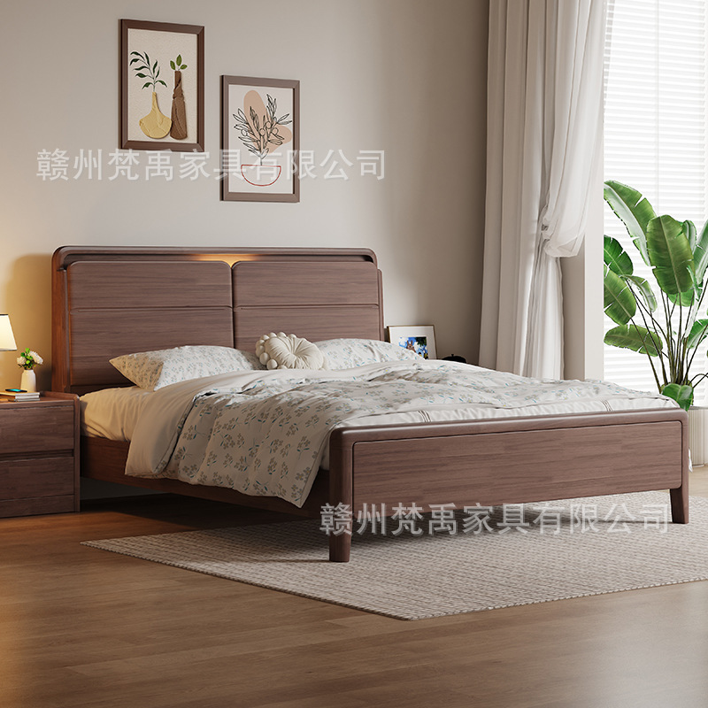 호두나무 원목 침대 1.8m 더블 침대 마스터 침실 현대적인 미니멀리스트 작은 아파트 가구 1.5m 싱글 침대