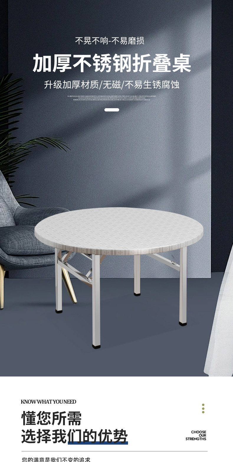 두꺼운 스테인레스 스틸 식탁 가정용 원형 식탁 접이식 테이블 야외 식사 사각형 테이블 접이식 테이블 원형 테이블스토어 가기
