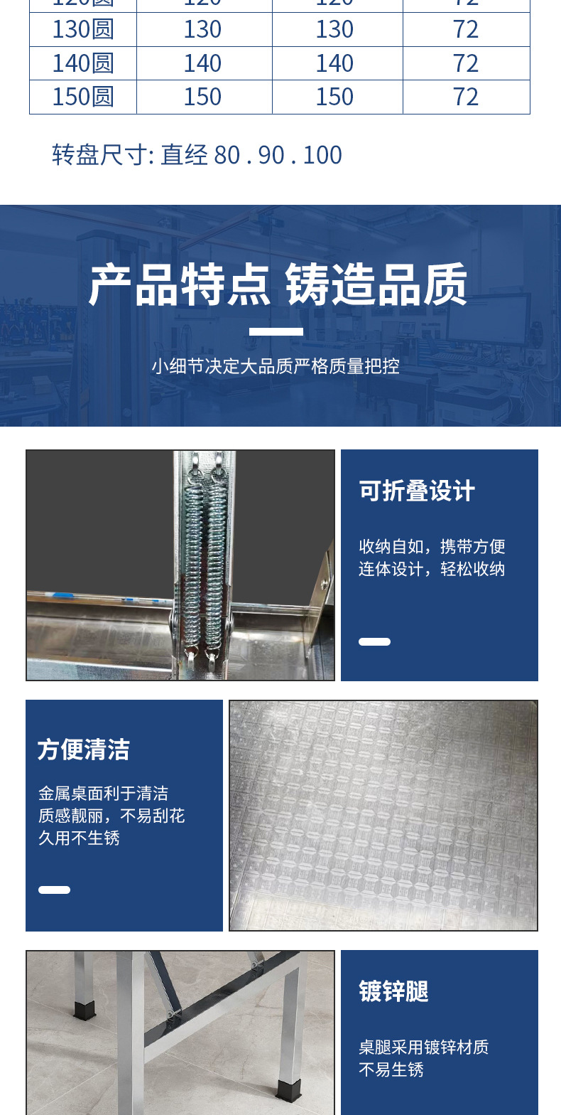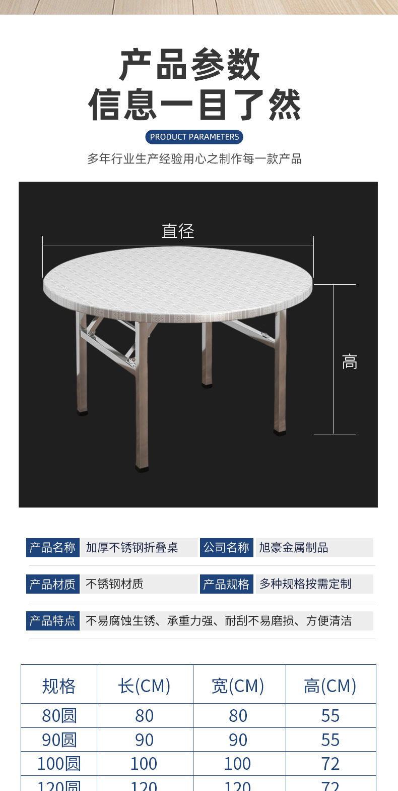 두꺼운 스테인레스 스틸 식탁 가정용 원형 식탁 접이식 테이블 야외 식사 사각형 테이블 접이식 테이블 원형 테이블