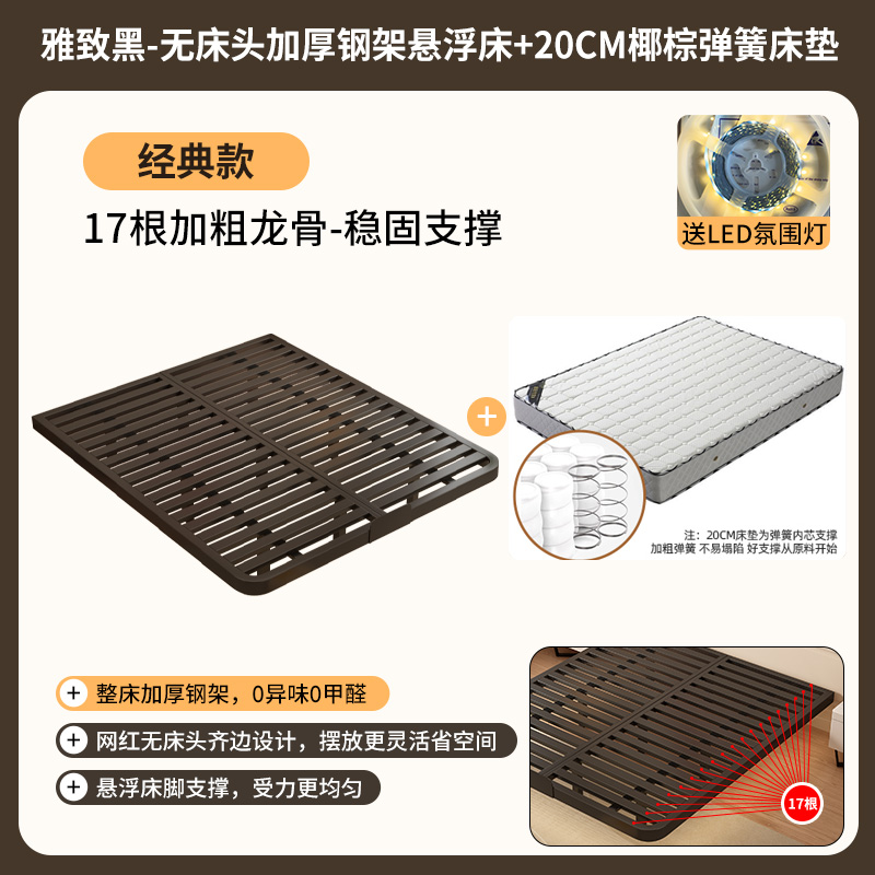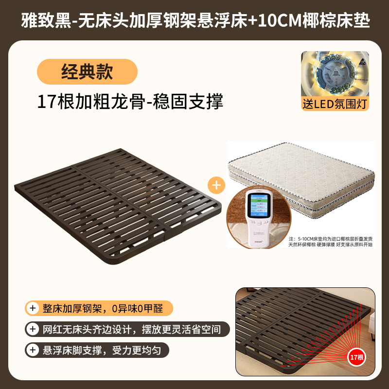 • εФεεεε【클래식】우아한 블랙 - 두꺼운 탄소강 프레임 침대 + 10CM 코코넛 야자 매트리스(두꺼운 용골 17개) εФεεεε