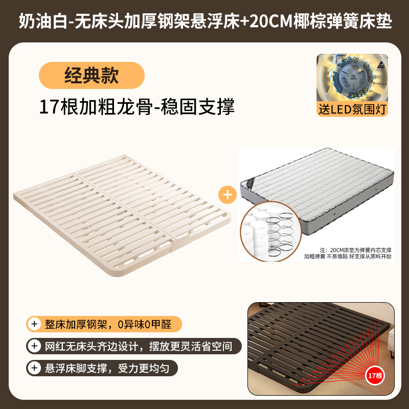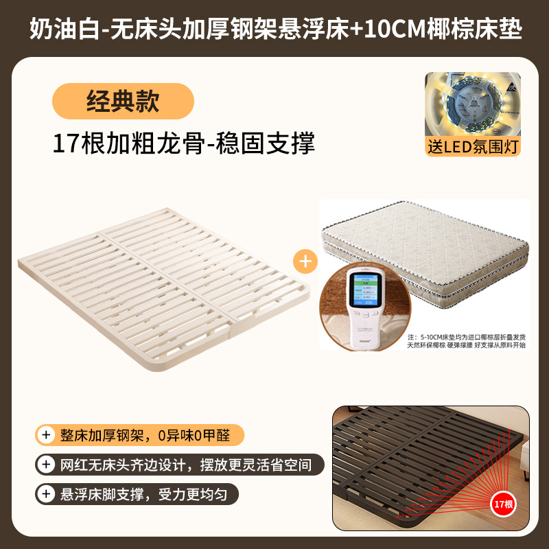 • εФεεεε【클래식】크림 화이트 - 두꺼운 탄소강 프레임 침대 + 10CM 코코넛 야자 매트리스(두꺼운 용골 17개) εФεεεε