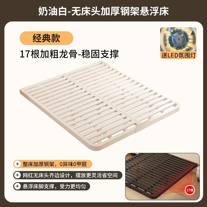 • εФεεεε【클래식】크림 화이트 - 두꺼운 탄소강 프레임 침대(두꺼운 용골 17개) εФεεεε