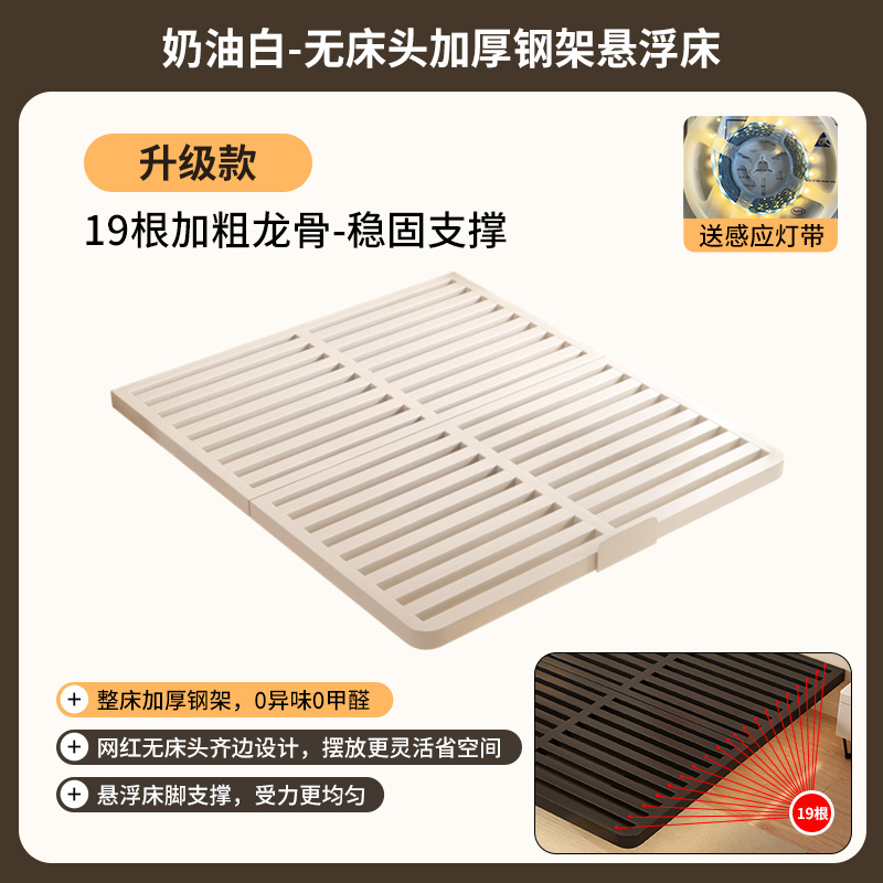 • εФεεεε【업그레이드 모델】크림 화이트 - 두꺼운 탄소강 프레임 침대(19개 용골로 업그레이드) εФεεεε