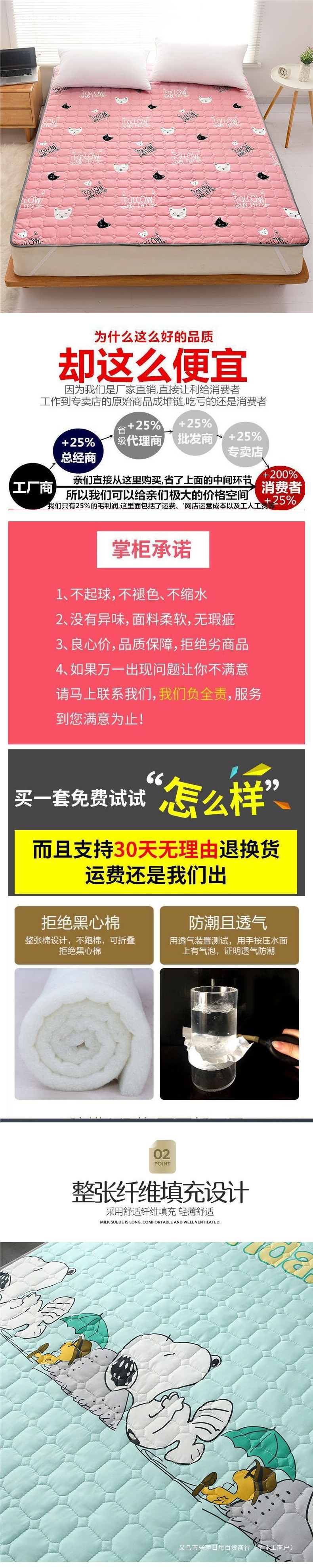 사계절 범용 미끄럼 방지 세탁기로 세탁 가능한 얇은 매트리스 보호대 두꺼운 다다미 매트리스 싱글 및 더블 학생 기숙사스토어 가기
