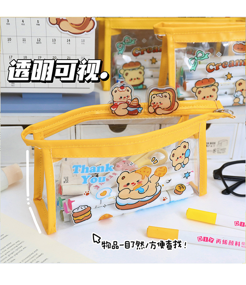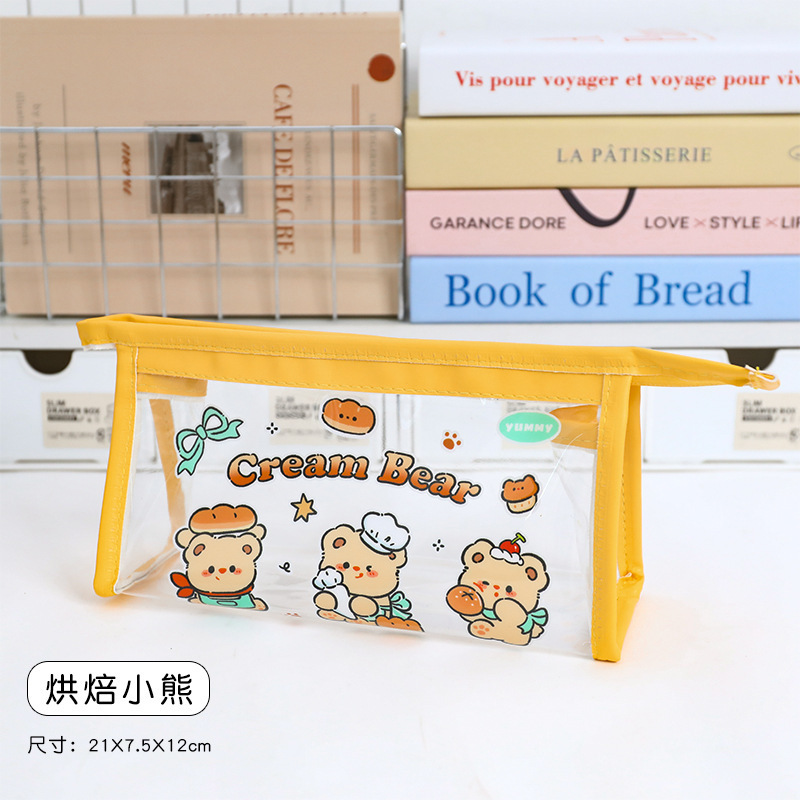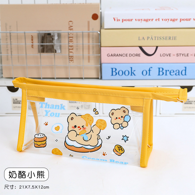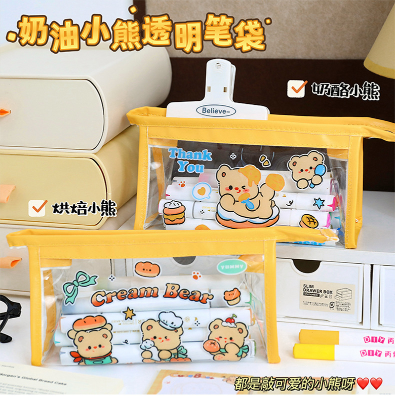 귀여운 크림 곰 인 고급 연필 가방 대용량 학생 일본 만화 투명 문구 가방 연필 상자스토어 가기