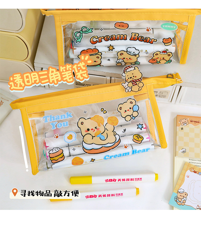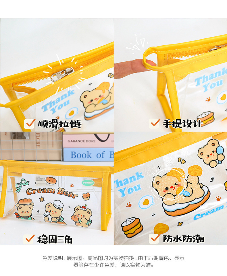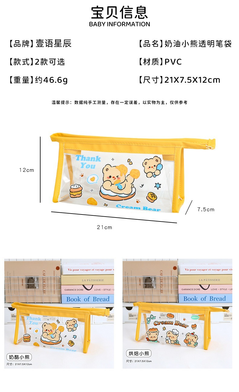 귀여운 크림 곰 인 고급 연필 가방 대용량 학생 일본 만화 투명 문구 가방 연필 상자