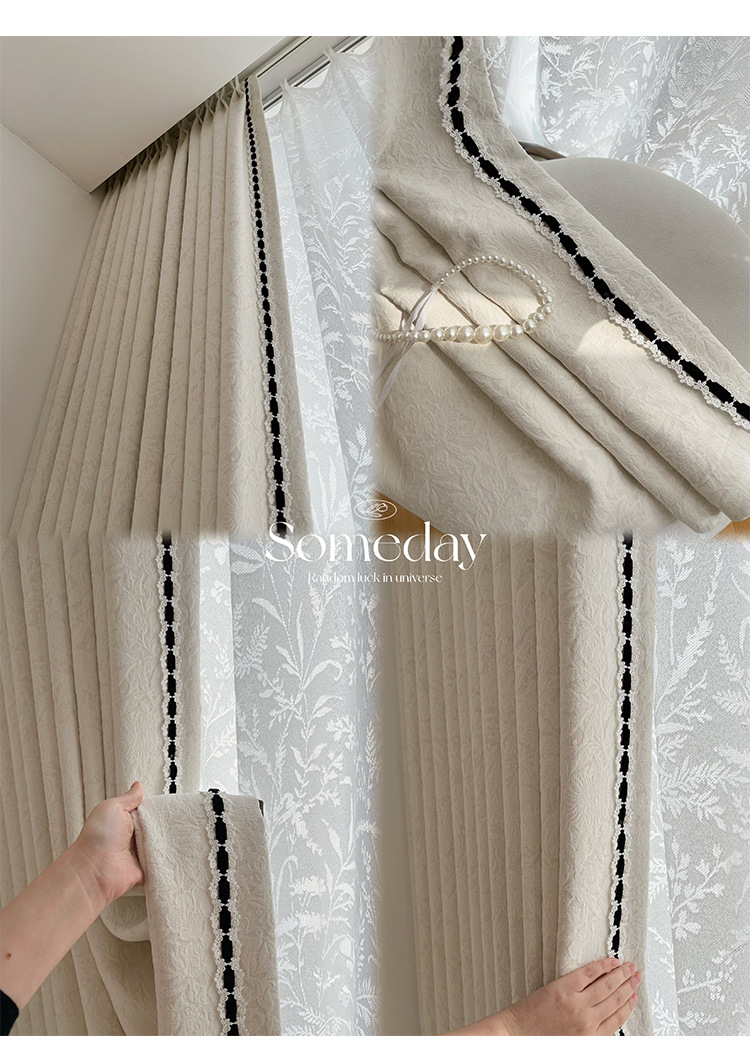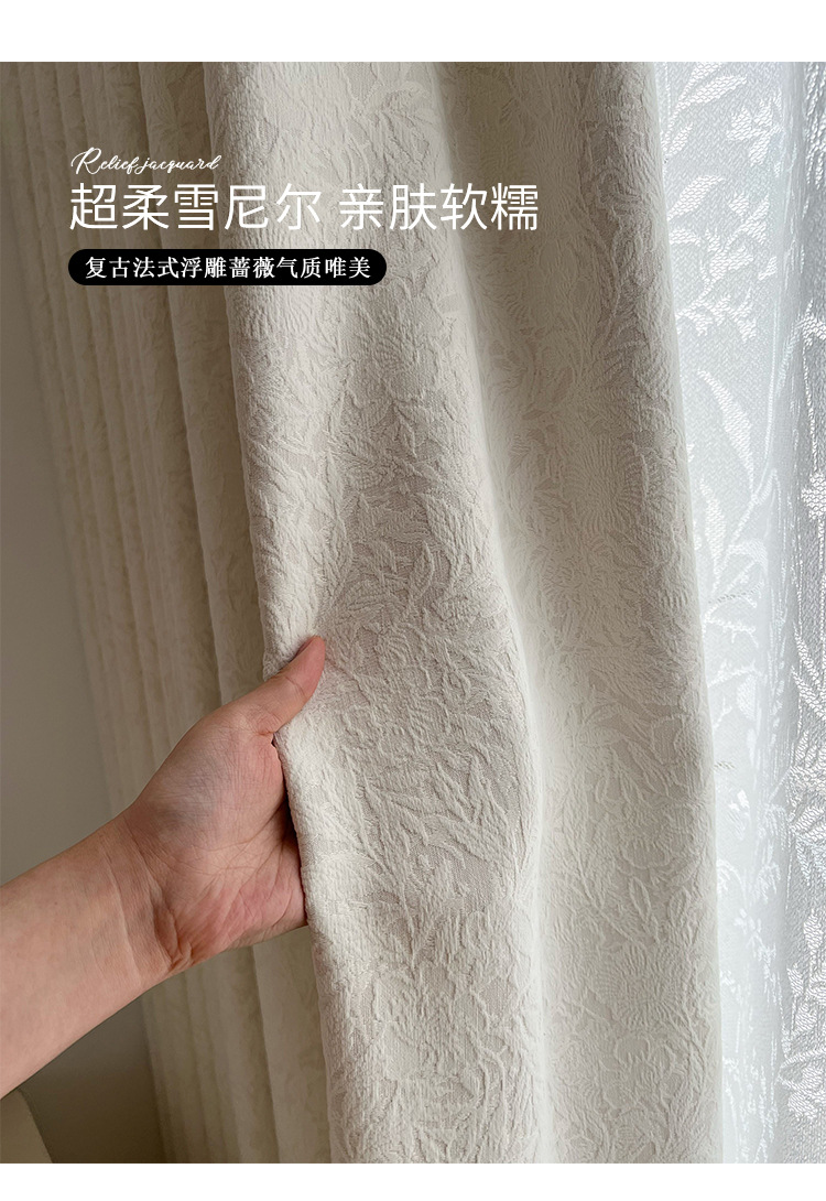 로즈 프렌치 블랙아웃 침실 중고 커튼 2025 새로운 스타일 거실 복고풍 양각 자카드 셔닐 커튼