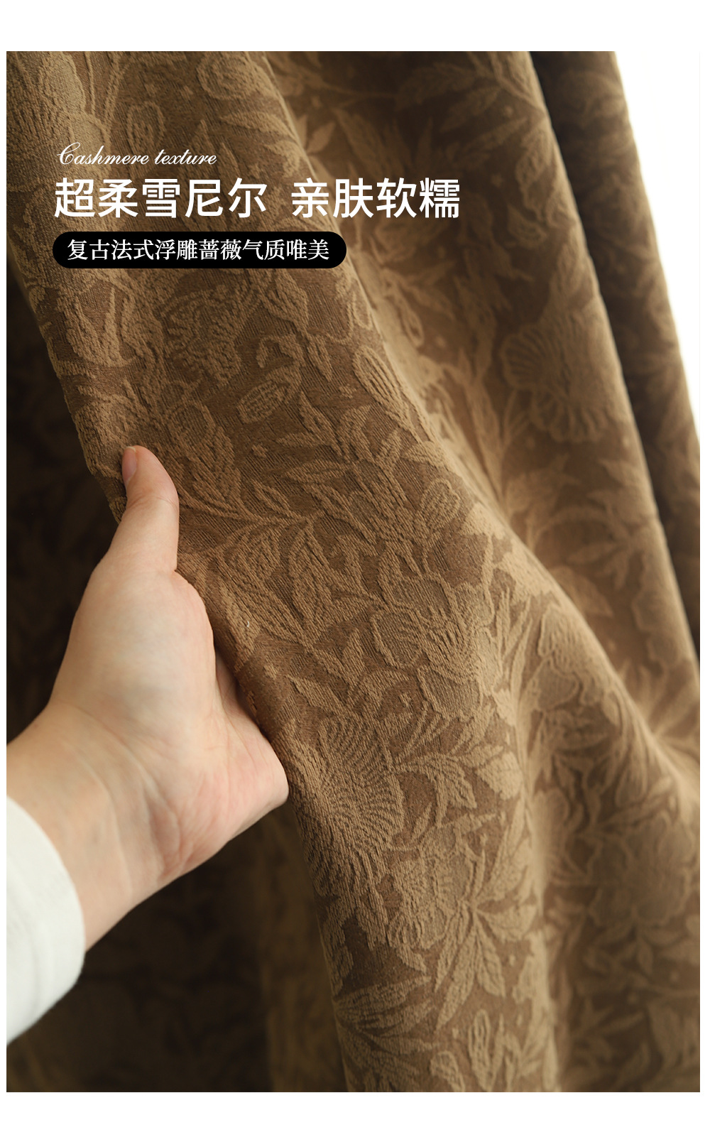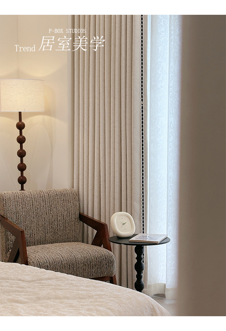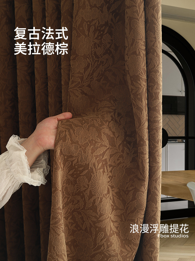 로즈 프렌치 블랙아웃 침실 중고 커튼 2025 새로운 스타일 거실 복고풍 양각 자카드 셔닐 커튼스토어 가기