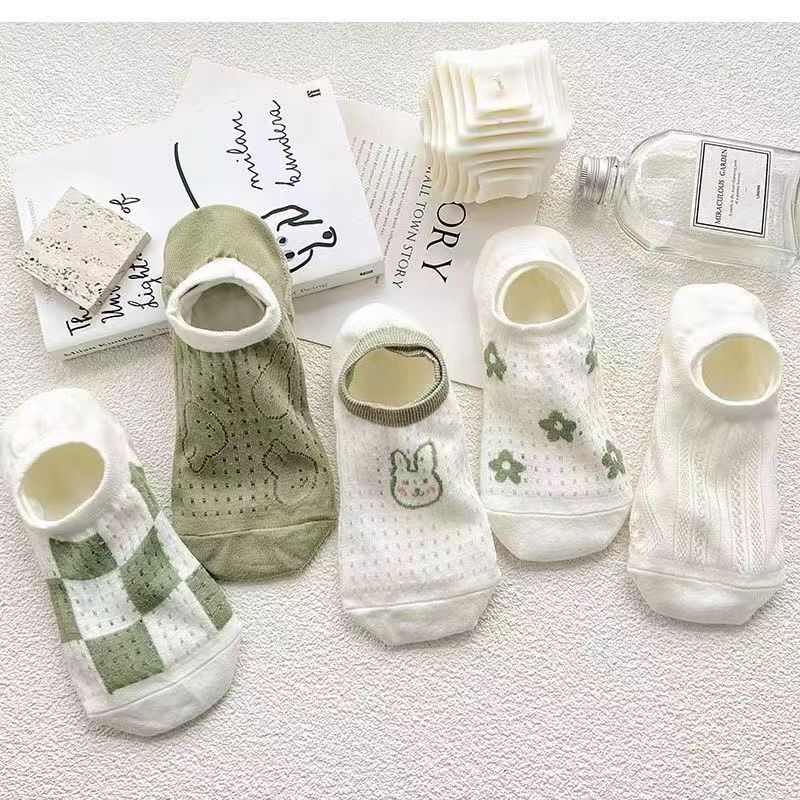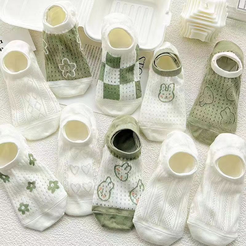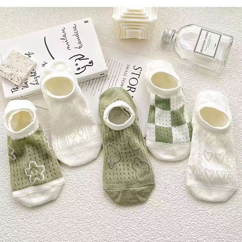 양말 여성 일본 양말 작은 신선한 꽃 여름 얇은 얕은 입 보트 양말 녹색 보이지 않는 양말 Zhuji 도매스토어 가기