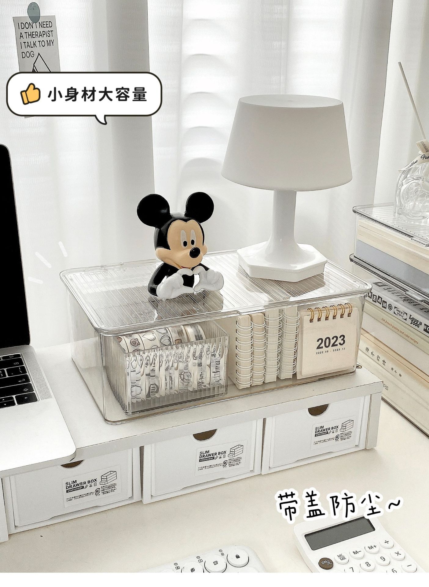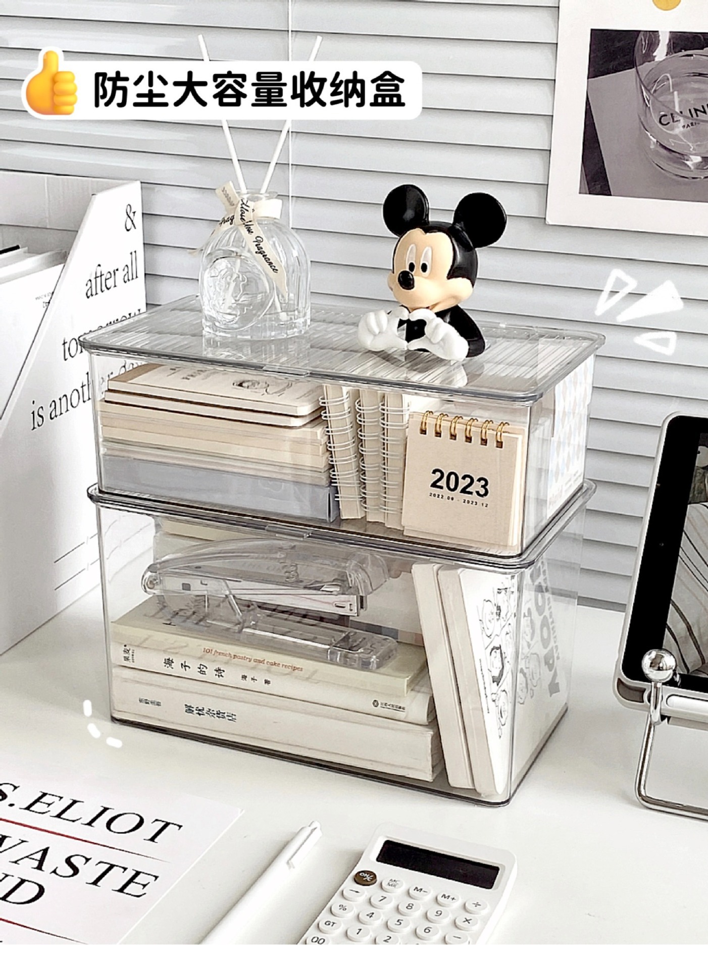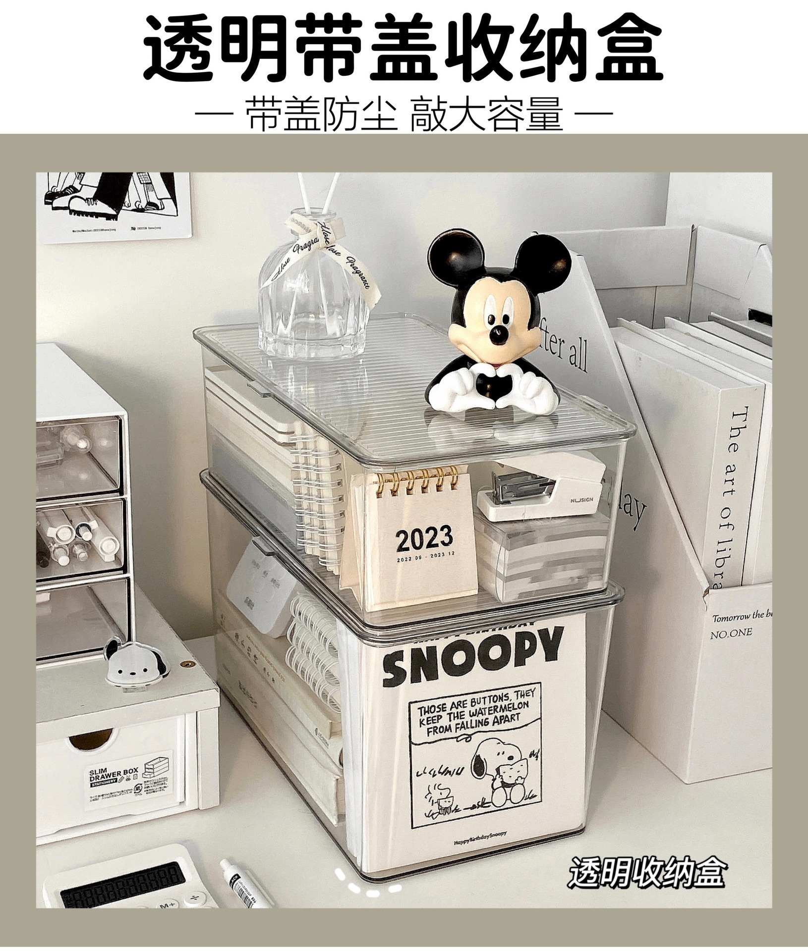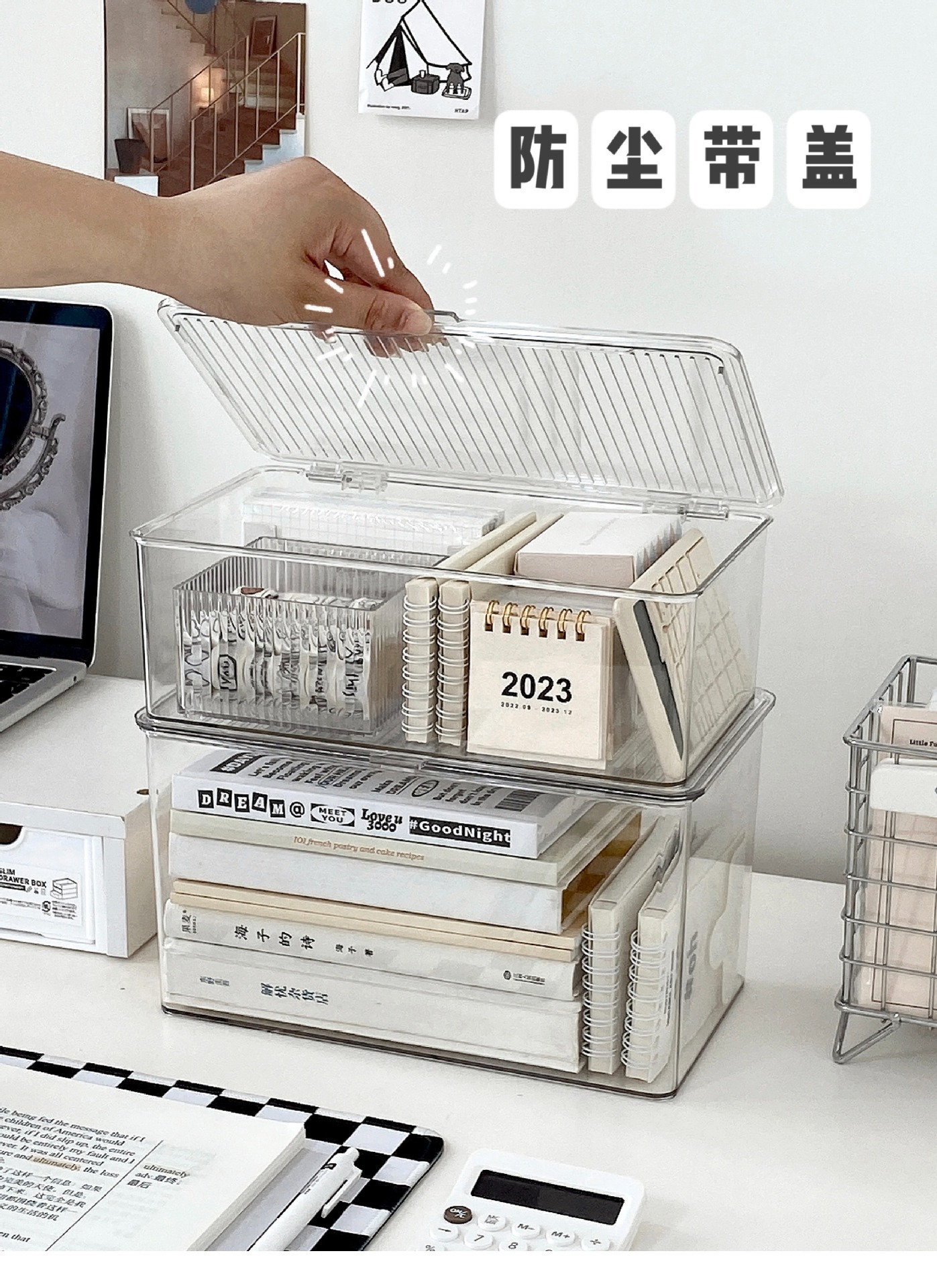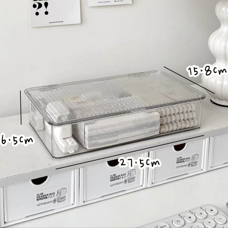 뚜껑이 있는 아크릴 보관 상자 데스크탑 투명 정리 상자 대용량 방진 사무실 책상 문구 보관 상자