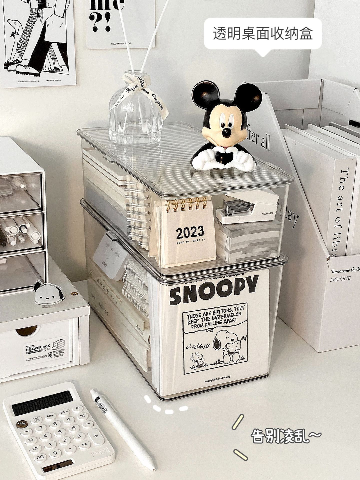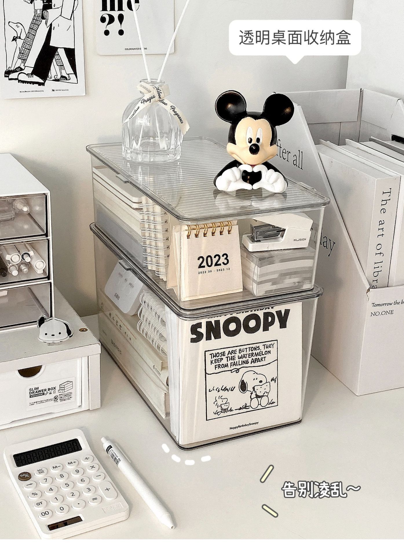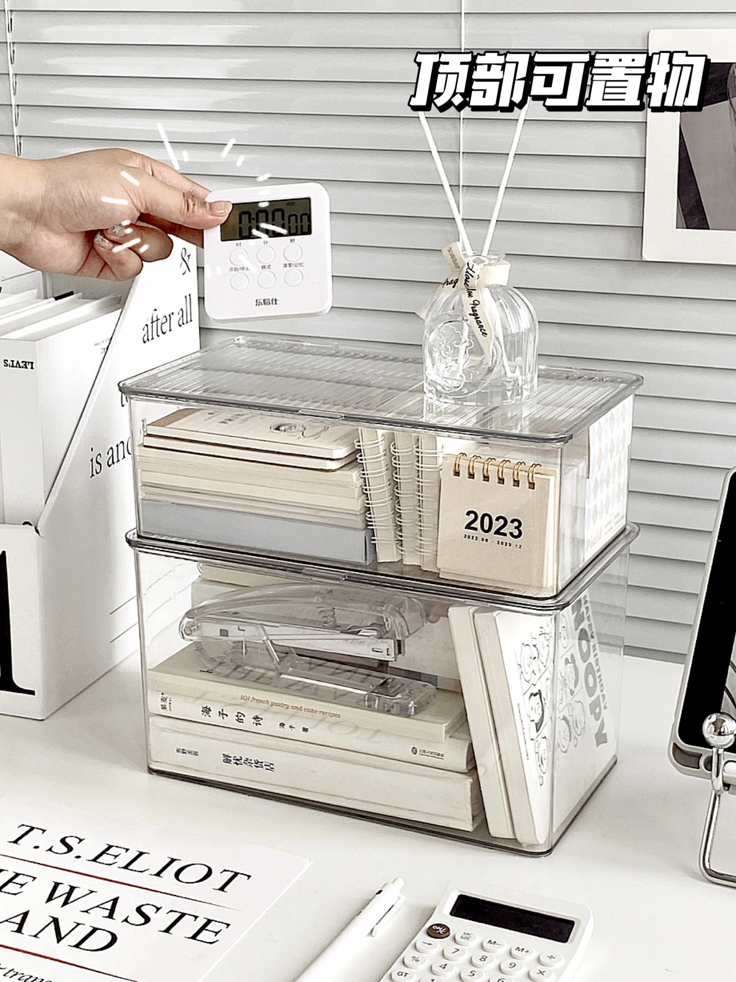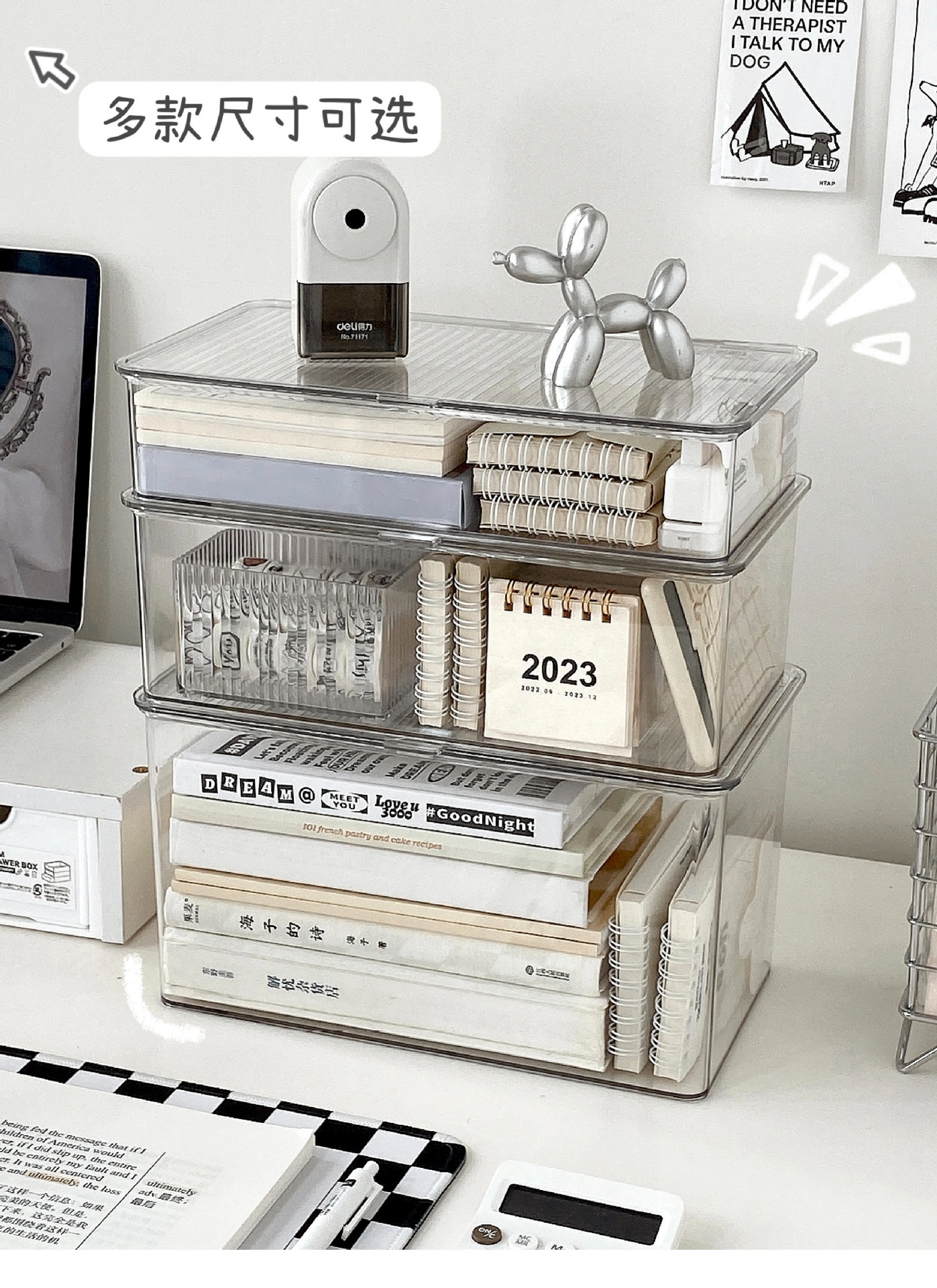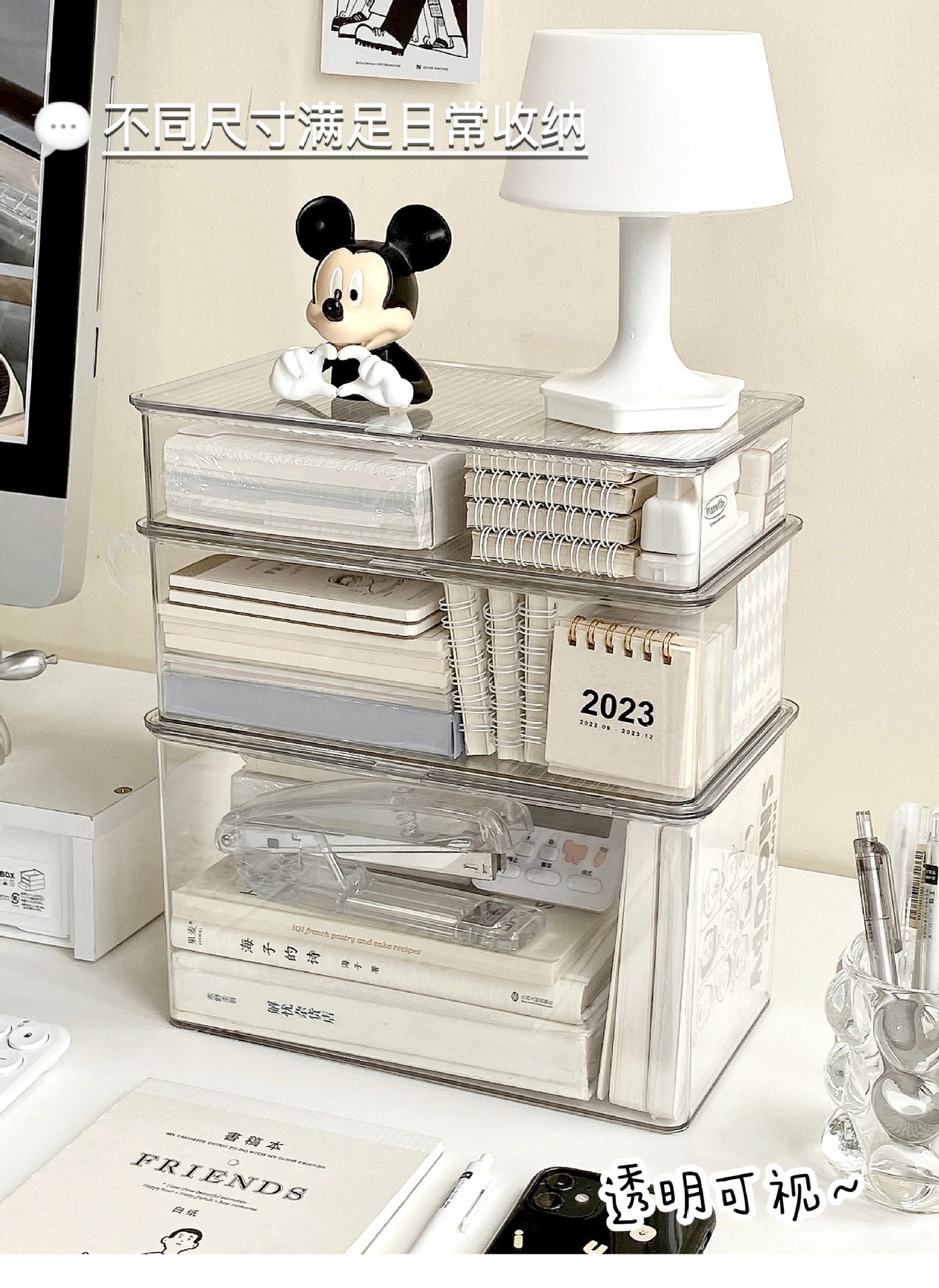 뚜껑이 있는 아크릴 보관 상자 데스크탑 투명 정리 상자 대용량 방진 사무실 책상 문구 보관 상자