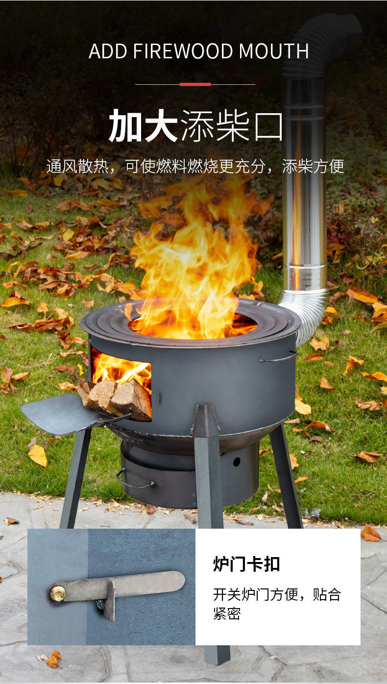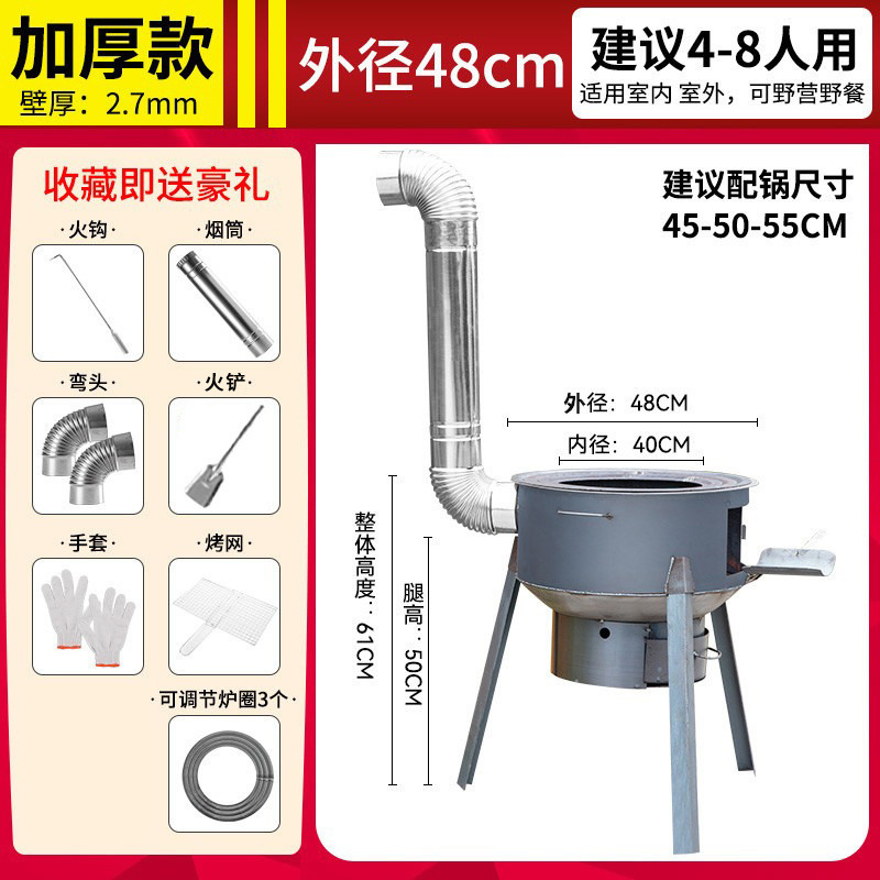 • 직경 48CM의 두꺼운 난로 + 굴뚝 선물 패키지가 포함된 난로 링 3개 - 일체형 장작 난로 [강화 강판]