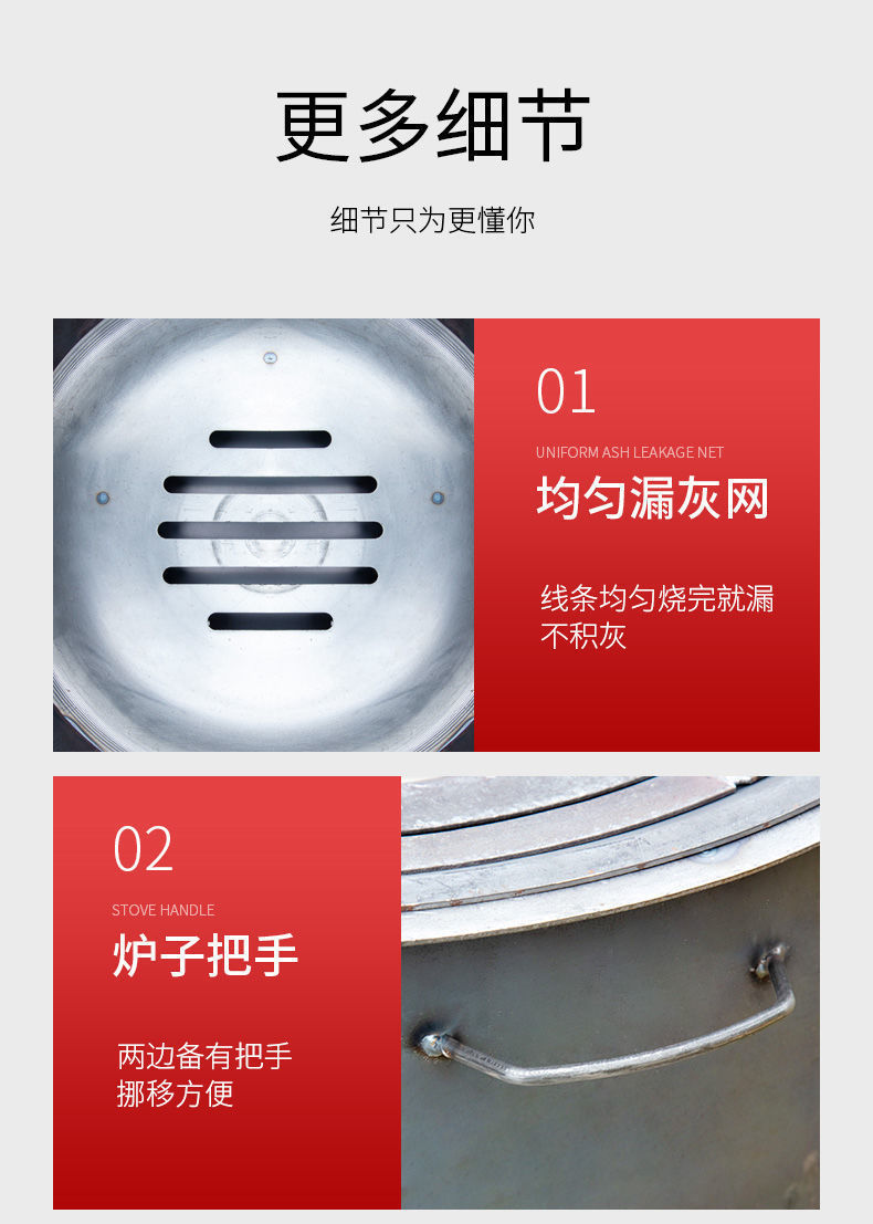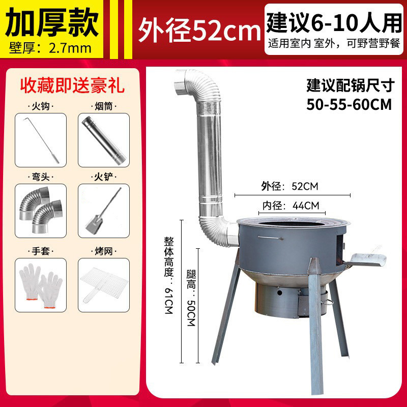 • 직경 63CM 스토브 특대 패키지 + 무료 굴뚝 선물 패키지 (링 없음) - 일체형 장작 난로 [강화 강판]