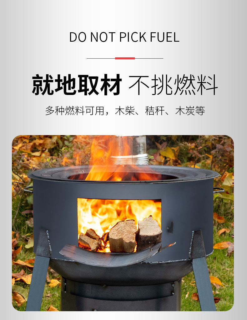 • 직경 48CM 난로 + 굴뚝 선물 패키지가 포함된 난로 링 3개 - 일체형 장작 난로 [강화 강판]