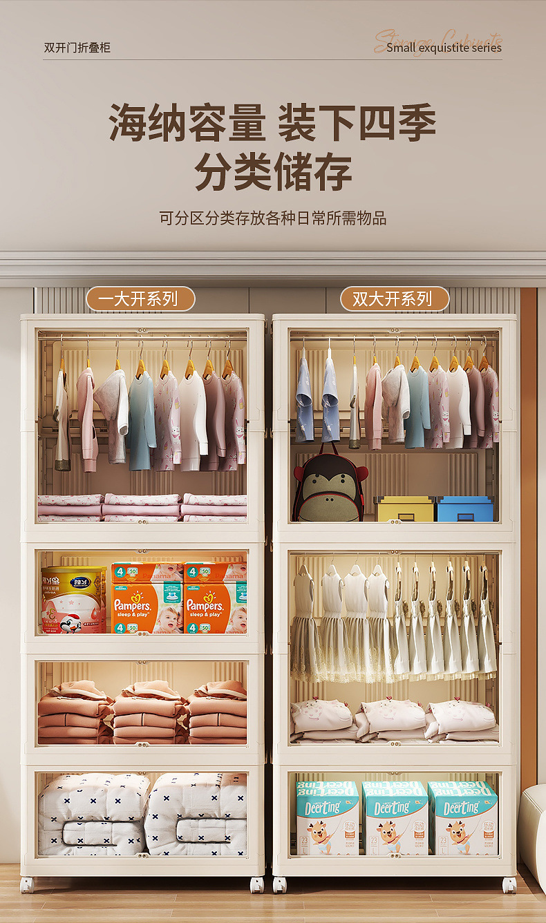 접이식 수납 캐비닛 어린이 옷장 이중 도어 플라스틱 캐비닛 침실 룸 아기 간단한 설치 수납 캐비닛