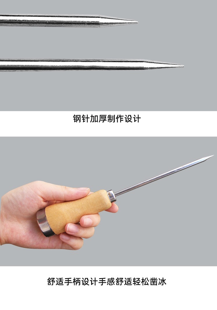 공장 직접 판매 단단한 나무 스테인레스 스틸 아이스 콘 아이스 박스 제빙기 싱글 포크 나무 손잡이 아이스 콘 아이스 크러셔 바텐더 도구스토어 가기