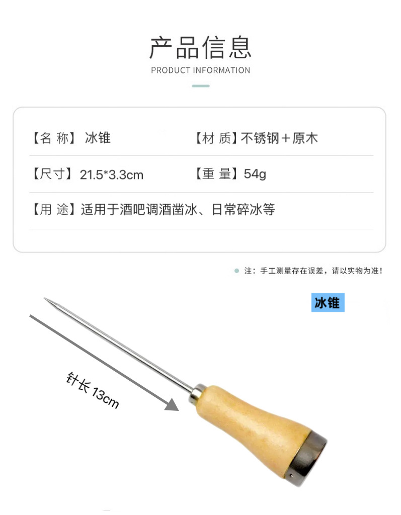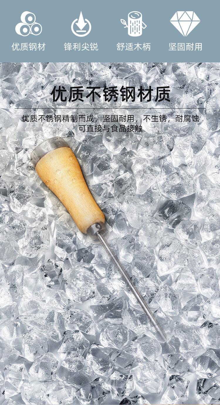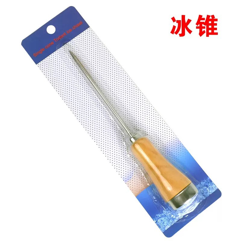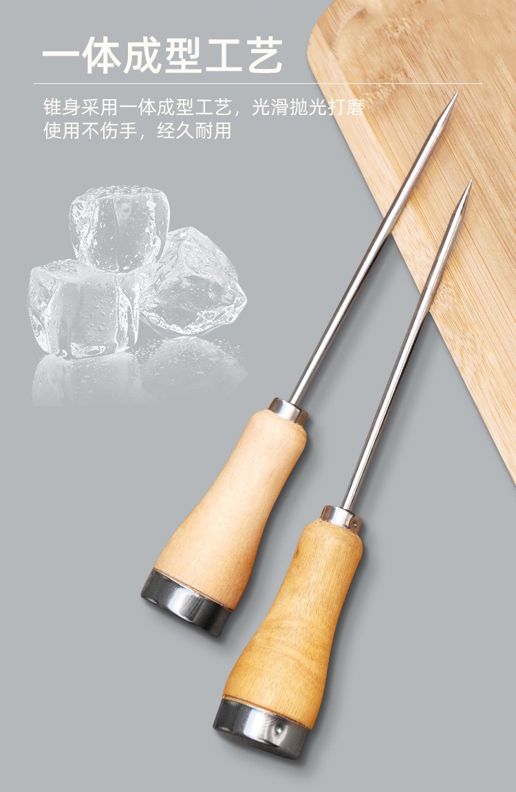 공장 직접 판매 단단한 나무 스테인레스 스틸 아이스 콘 아이스 박스 제빙기 싱글 포크 나무 손잡이 아이스 콘 아이스 크러셔 바텐더 도구