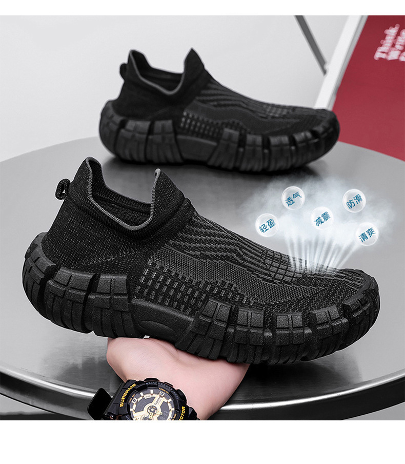 男鞋夏季网面鞋飞织鞋薄款防滑软底运动休闲鞋一脚蹬透气男鞋潮流