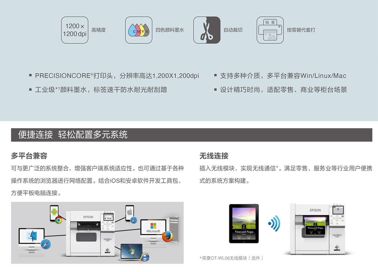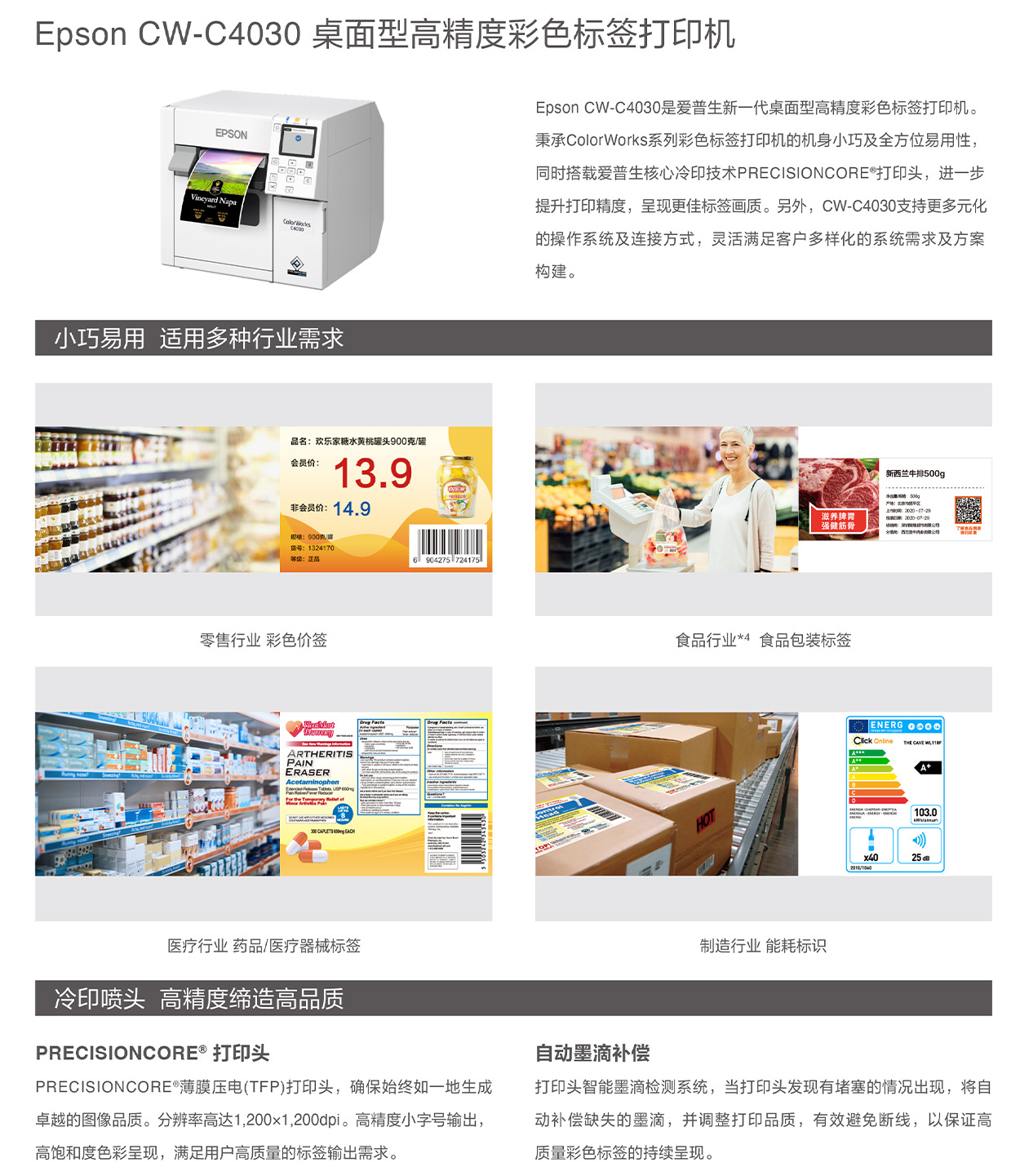 Epson CW-C4030 C3520 컬러 라벨 프린터 의류 태그 의료 라벨 신선한 라벨 등스토어 가기