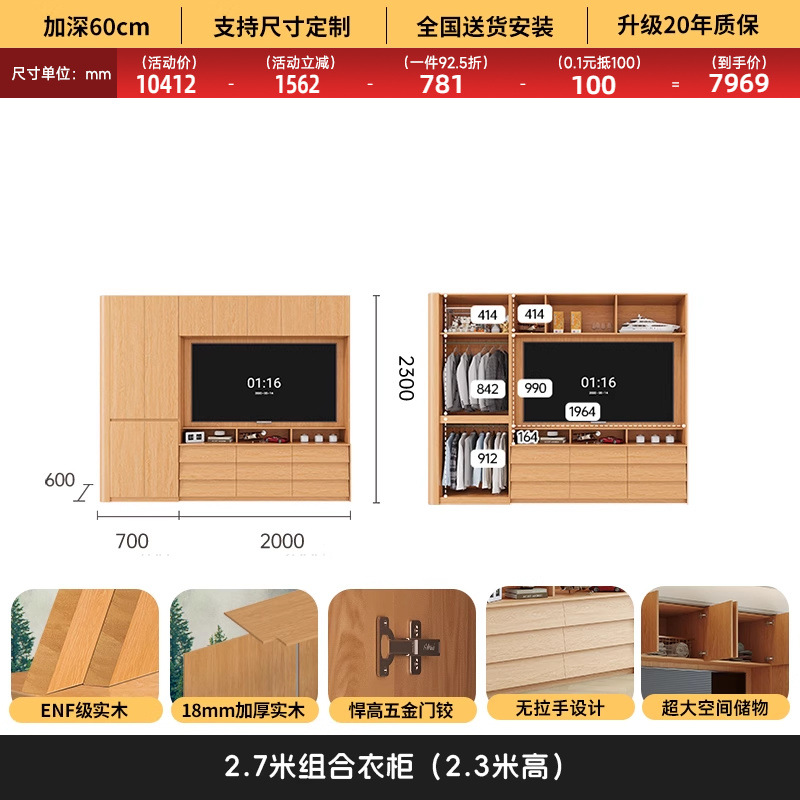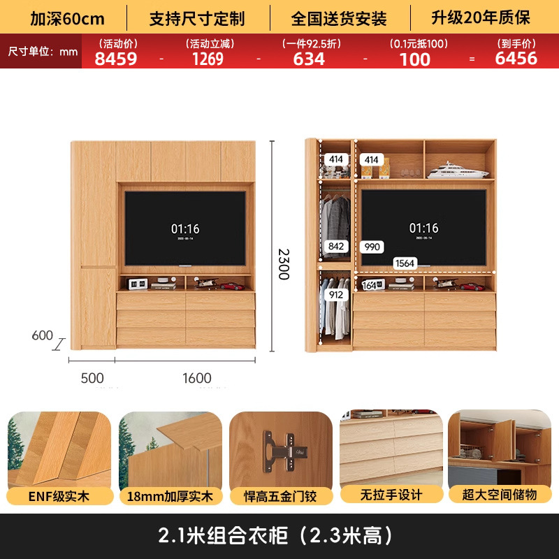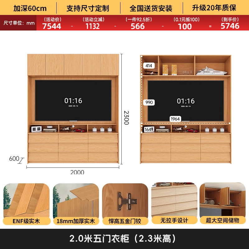 • 2.0*2.3(5도어 옷장)에 TV를 수납할 수 있습니다.