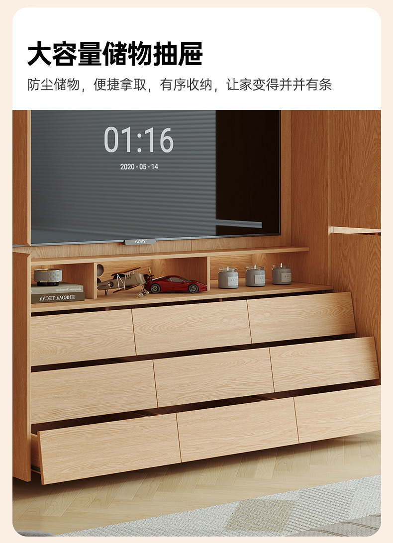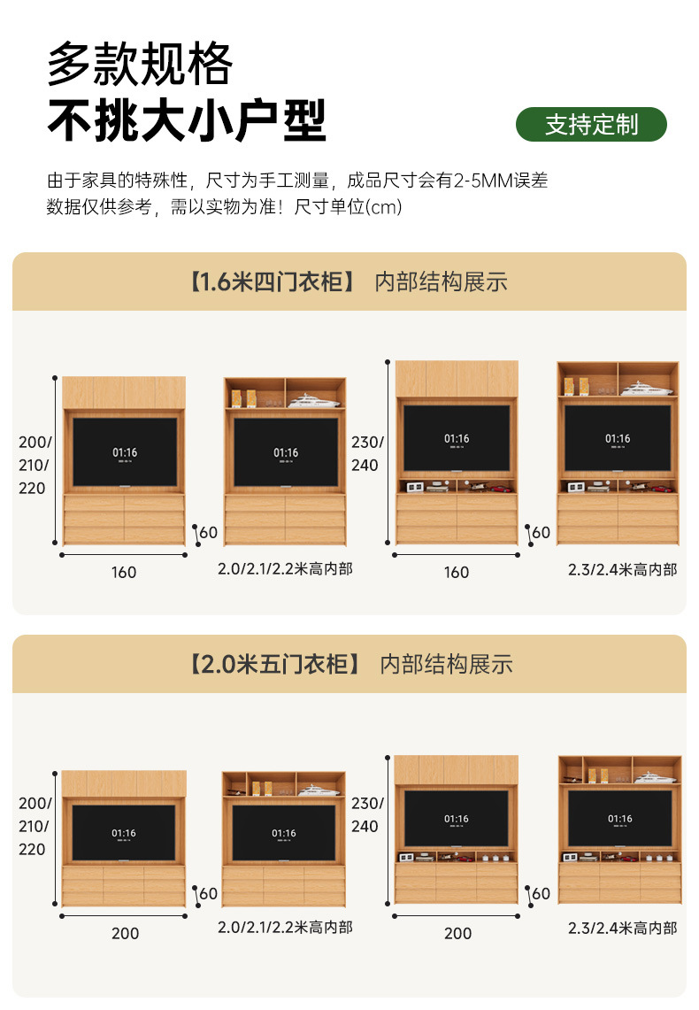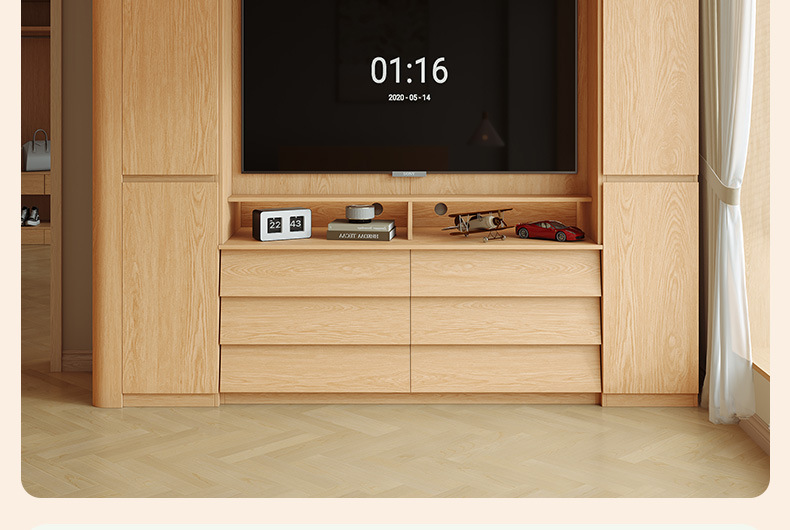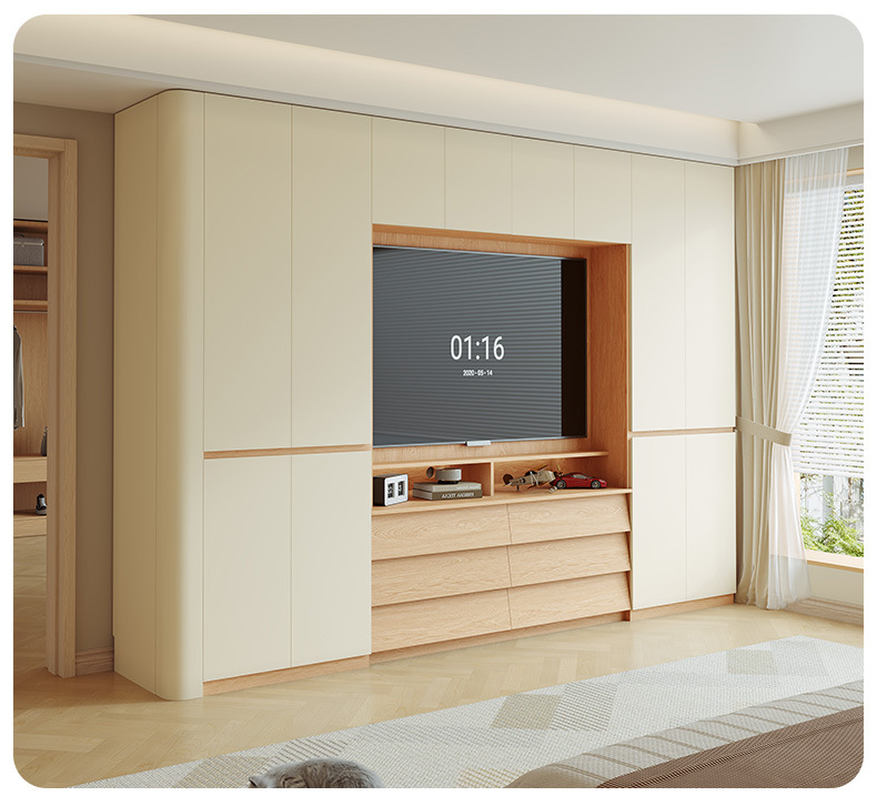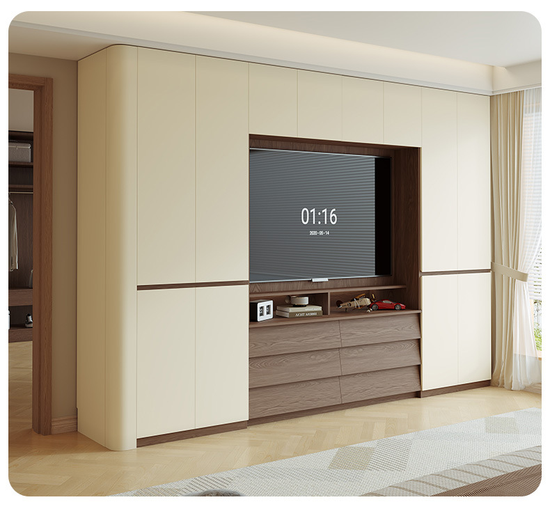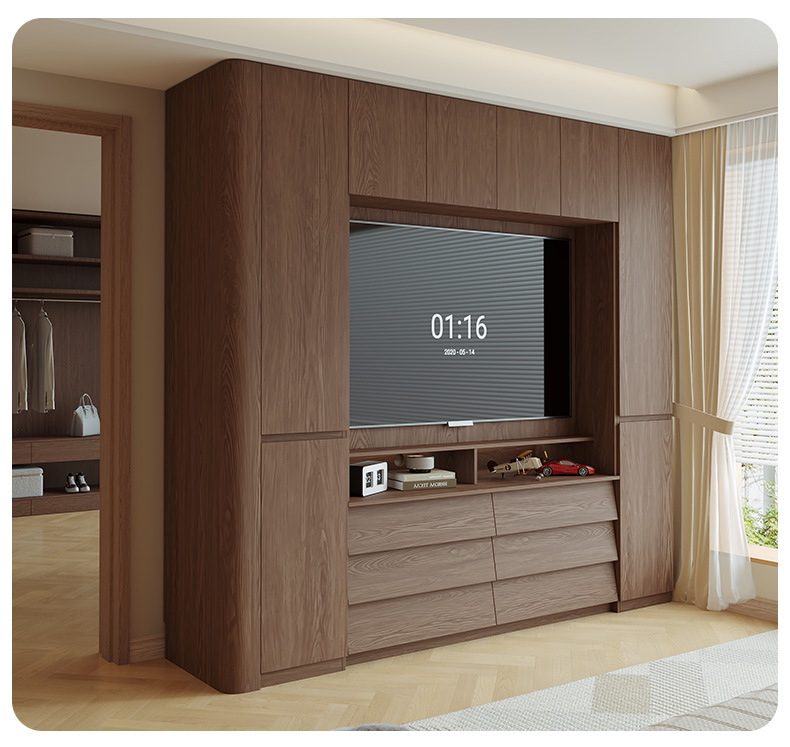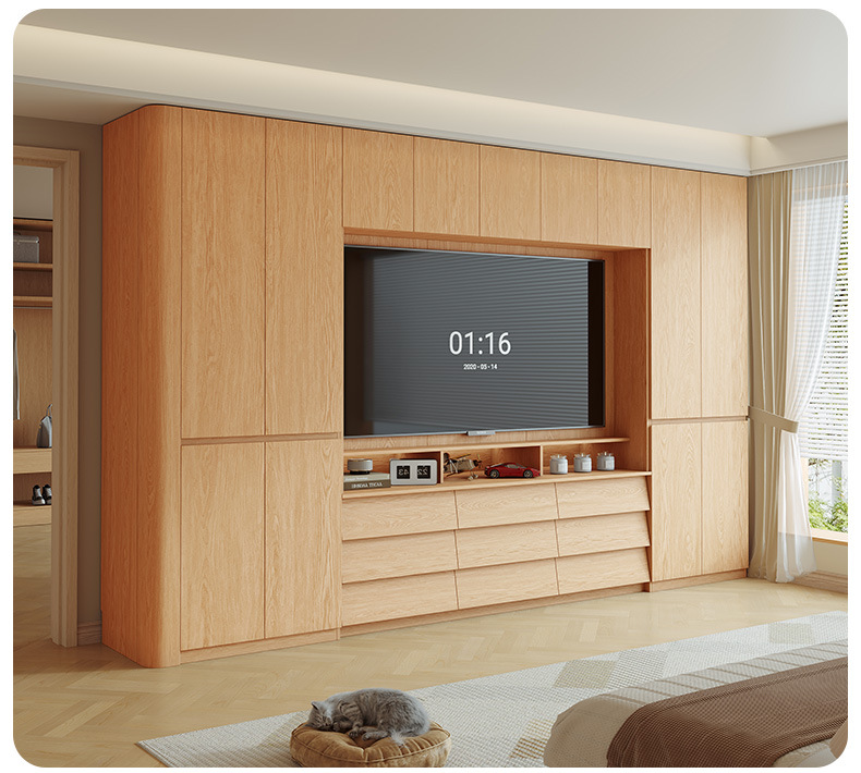 전체 단단한 참나무 분할 아크 옷장은 TV를 내장할 수 있습니다. 새로운 침실 홈 조합 대형 옷장
