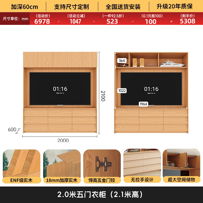 • 2.0*2.0(5도어 옷장)에 TV를 수납할 수 있습니다.