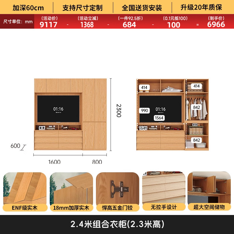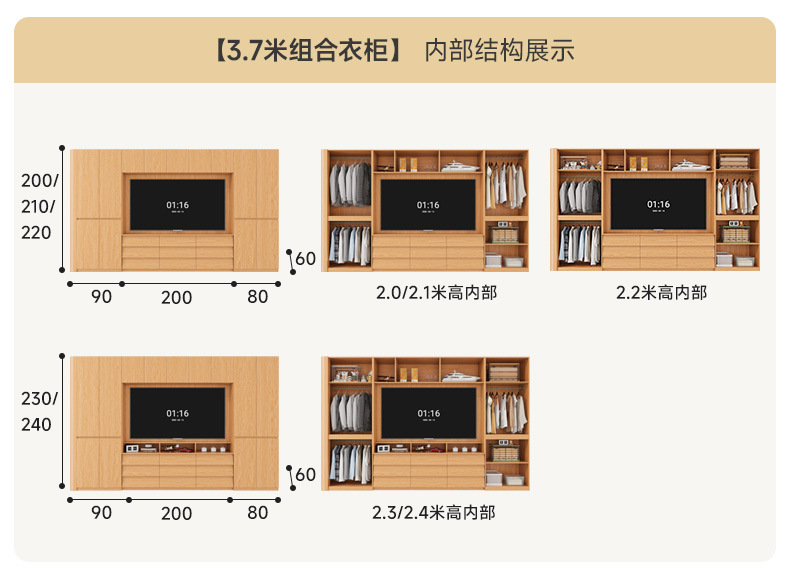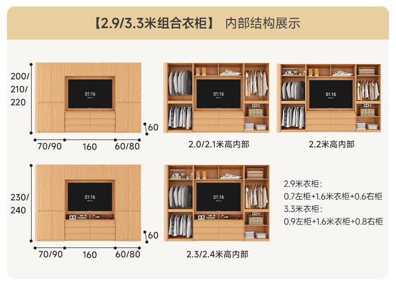 • 1.6*2.3(4도어 옷장)에 TV를 수납할 수 있습니다.